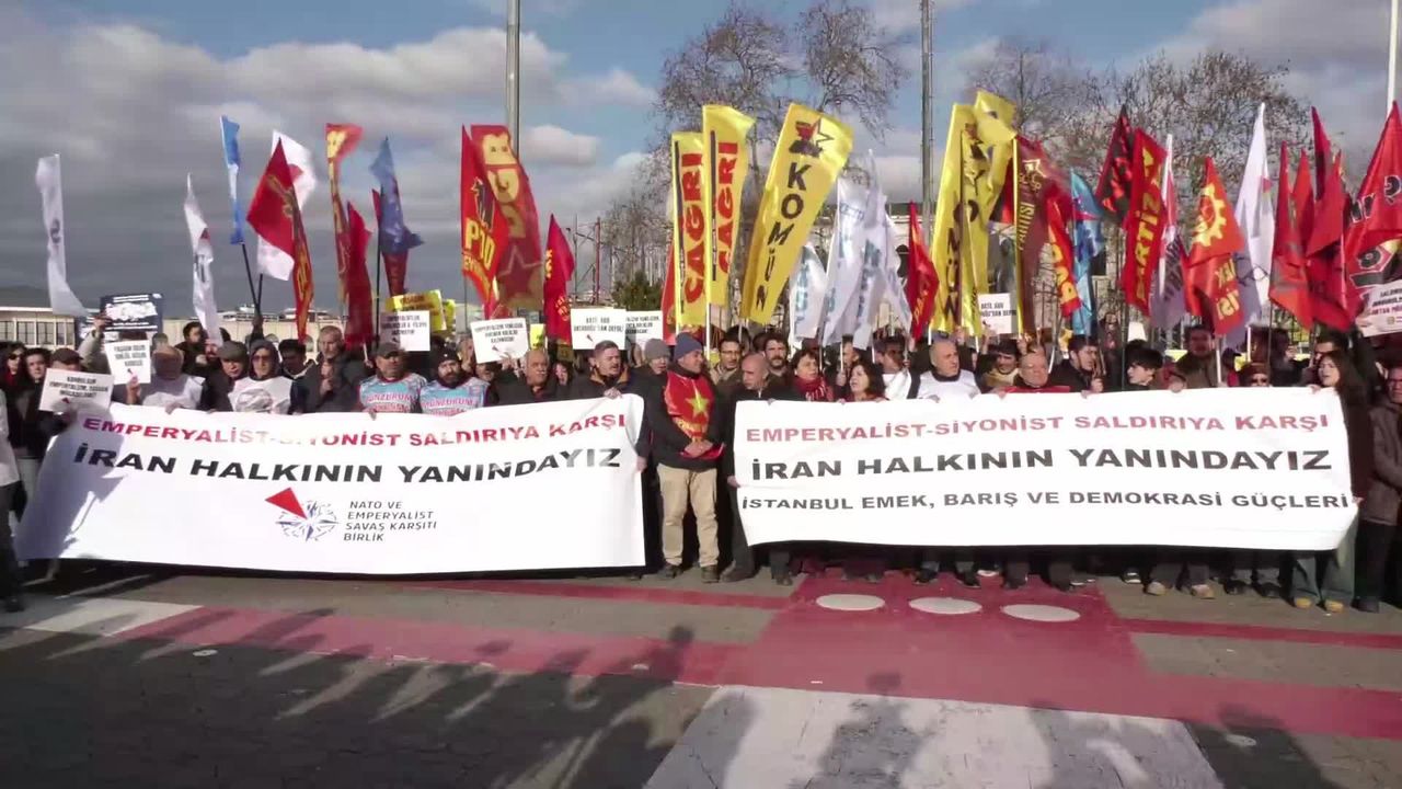 (İSTANBUL) ABD ve İsrail'in İran'a yönelik dün sabah başlattığı askeri saldırı Kadıköy'de protesto edildi. Akşam saatlerinde Kadıköy İskele'de buluşan İstanbul İmek, Barış ve Demokrasi Güçleri ortak açıklama yaptı. Açıklamada 'Emperyalistlerin, siyonistlerin, işbirlikçi gerici devletlerin; gerekçe ne olursa olsun ülkelere saldırma, işgal etme hakları yoktur. Her ülkenin işçilerinin, emekçilerinin, ezilenlerinin; kendi burjuvazisiyle hesaplaşmaları kendi içişleridir. ABD emperyalizminin, soykırımcı İsrail'in halklara neler getirdiğini, Afganistan'dan, Irak'tan, Libya'dan, Yemen'den, Suriye'den, Lübnan'dan, Filistin'den biliyoruz. Emperyalizm halklara özgürlük, demokrasi getirmez!' denildi.
