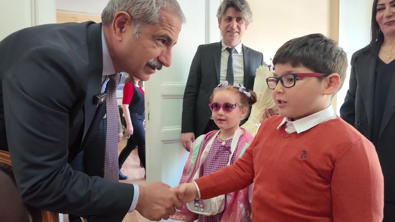 Ziyaret sırasında çocuklar, hazırladıkları resimleri Akpolat'a hediye ederken; Akpolat da öğrencilere hediyelerini verdi. Çocuklar, 23 Nisan temalı şiirlerini okuduktan sonra başkanlık koltuğunu yeniden devretti.
