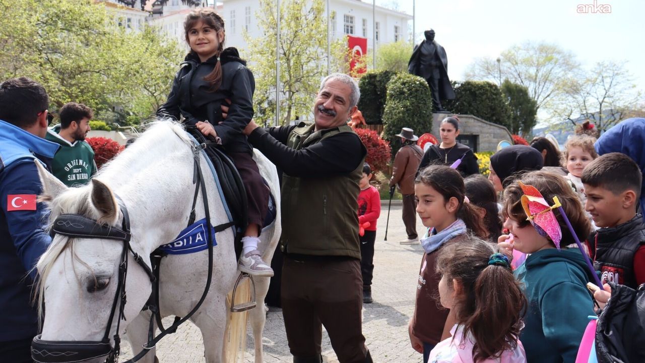 (İSTANBUL) - Adalar Belediye Başkanı Ali Ercan Akpolat, 23 Nisan Çocuk Şenliği'nin düzenlendiği Atatürk Meydanı'na at sırtında gelerek, çocuklara sürpriz yaptı. Çocukların ata binme isteğini de kırmayan Akpolat, minikleri tek tek at sırtına alarak hatıra fotoğrafları çektirdi.