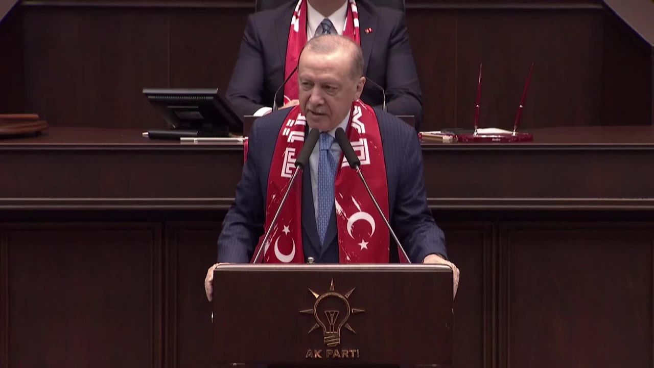 Cumhurbaşkanı ve AK Parti Genel Başkanı Erdoğan, partisinin TBMM'deki grup toplantısında ülke ve dünya gündemine ilişkin değerlendirmelerde bulundu. A Milli Futbol Takımı'nın Kosova karşısındaki galibiyetini tebrik ederek sözlerine başlayan Erdoğan, 'Milli takımımızı, bizim çocukları gönülden tebrik ediyorum. Ay yıldızlı bayrağımızı 24 yılın ardından futbolun bu en büyük sahnesinde dalgalandıracak olan milli takımımıza önce Avusturalya, Paraguay ve Amerika'ya karşı oynayacağımız maçlarda ve finale kadar gideceğini ümit ettiğimiz mücadelemizde başarılar diliyorum' dedi.