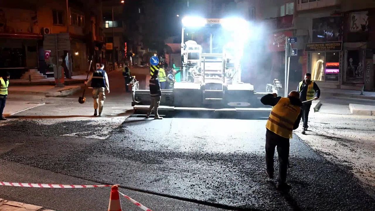 Gece yapılan asfalt çalışmalarını Bornova Belediye Başkanı Ömer Eşki, ilgili birim sorumlularıyla birlikte yerinde inceleyerek ekiplerden bilgi aldı.