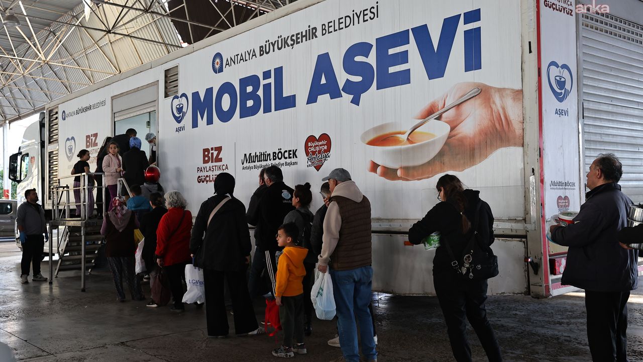 Mobil Aşevi, 11 Mart'ta (yarın) Muratpaşa Yeşildere Mahallesi Kültür ve Düğün Salonu Muhtarlık Evi'nde, 12 Mart'ta Kepez Şafak Mahallesi pazar yerinde, 13 Mart'ta Kepez Altınova Menderes Mahallesi muhtarlık önünde, 14 Mart'ta Muratpaşa Gebizli Mahallesi muhtarlık yanında vatandaşlarla buluşacak. Dağıtımlar 15 Mart'ta Kepez Teomanpaşa Mahallesi pazar yerinde, 16 Mart'ta Kepez Karşıyaka Mahallesi muhtarlık önünde, 17 Mart'ta Kepez Fevzi Çakmak Mahallesi pazar yerinde, 18 Mart'ta Kepez Göçerler Mahallesi Cemal Yalım Parkı'nda ve 19 Mart'ta Kepez Fatih Mahallesi muhtarlık arkasında olacak.