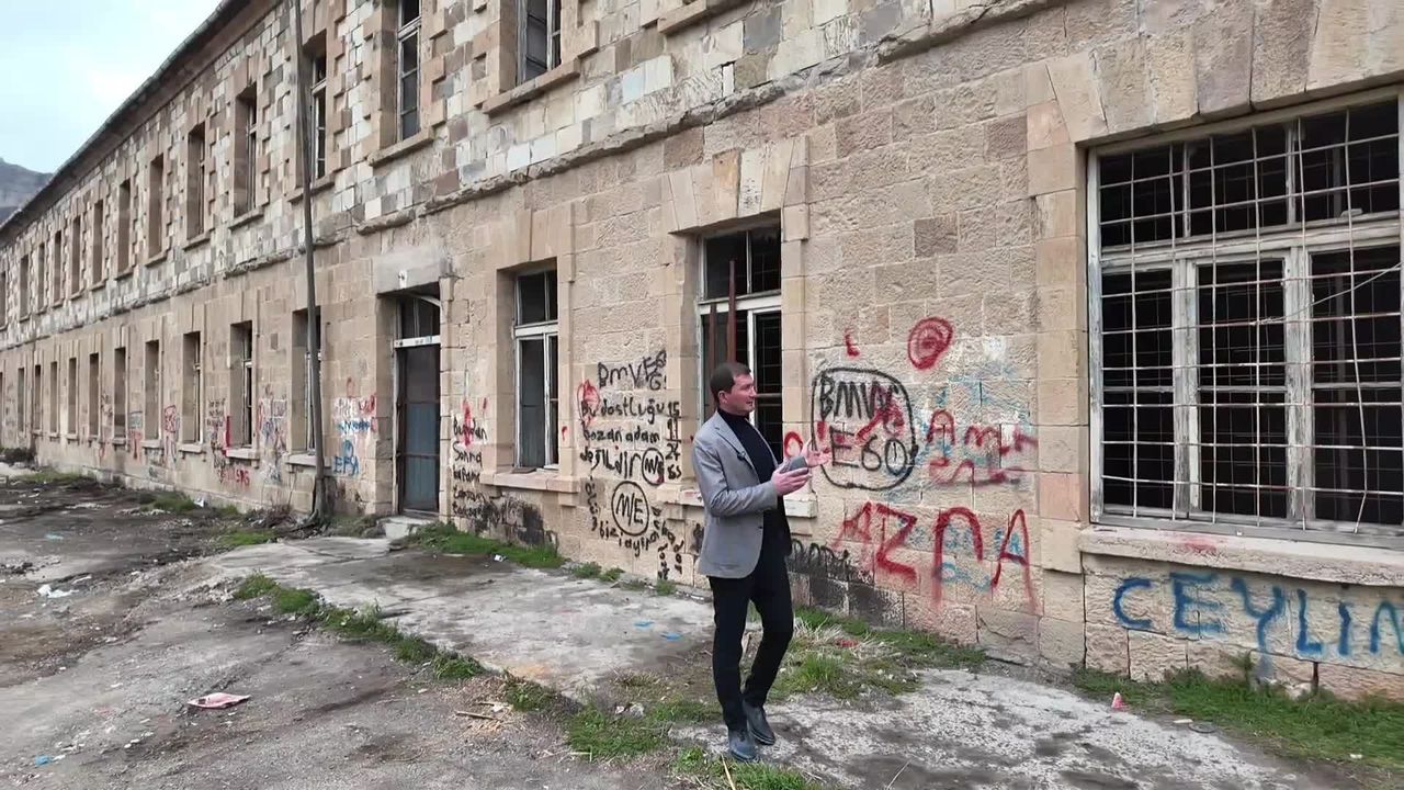 'Şuradaki yazılara bakın. 'Bu bizim bir varlığımız, kültür varlığımız, bu bizim değerimiz' dedik. Burada birçok öğrenci, öğretmen, idareci ve çalışanlarımız oldu. Bu okuldan mezun olan valiler, kaymakamlar, siyasetçiler, bürokratlar, esnaf ve memurlar oldu dedik. Herkesin bir anısı, bir hikâyesi var dedik ama böyle bir tabloyla karşılaşmak gerçekten beni derinden üzdü. Bunu yapan insana, insan demiyorum, hayvana da hayvan demiyorum. Çünkü bunu yapan hayvan bile olamaz. Öküze bile 'höş' dersin durur, 'ho' dersin gider; ama bunu yapana hayvan bile demek istemiyorum. 'Yaratık' demek istiyorum. Şu görüntüye bakar mısınız? İç karartıcı bir durum var burada.