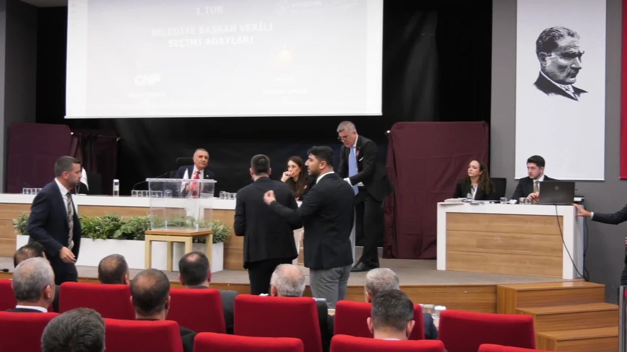 İlk turda CHP'nin adayı Güneş 23 oy alırken AK Partili Orhan, 12 oy aldı, 1 oy geçersiz sayıldı. İkinci turda ise Güneş 22, Orhan 13 oy alırken yine 1 oy geçersiz sayıldı. Her iki turda da üçte ikilik çoğunluk sağlanamadığı gerekçesiyle üçüncü tura geçildi. Bu sırada CHP ile AK Parti tarafları arasında yaşanan tartışma sonrasında Özgür Çelik ile Abdullah Özdemir yan yana oturdu. Çelik, Özdemir'e 'Milli irade hırsızlığı yapmaya çalışıyorsunuz' diye tepki gösterdi.