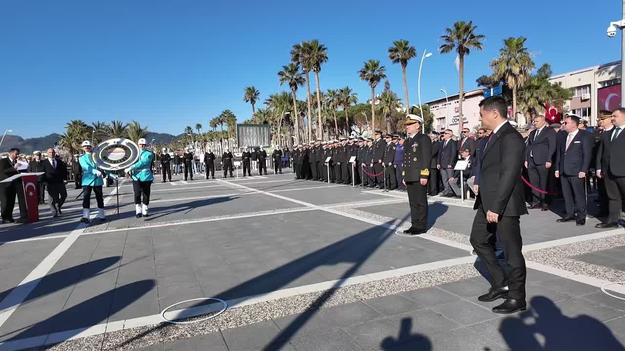 Aksaz Deniz Üssü Bandosu'nun eşliğinde saygı duruşunda bulunulmasının ardından İstiklal Marşı okundu. Marmaris Ortaokulu Müdür Yardımcısı Özge Tütüncü'nün günün anlam ve önemine ilişkin yaptığı konuşmanın ardından Türk bayrağı ve Atatürk posterleri ile donatılmış yelkenliler, tekneler ve sahil güvenlik botları siren çalarak tören geçişi yaptı.