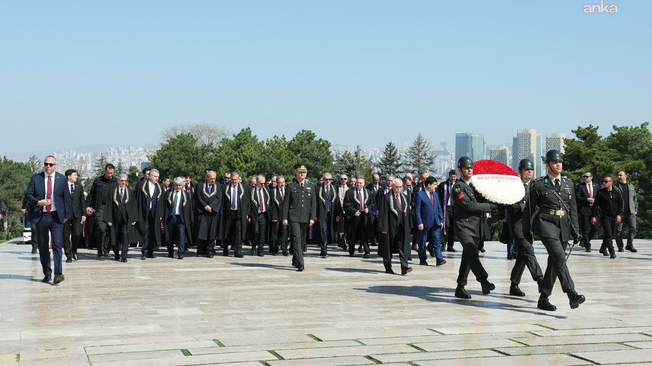 AYM Başkanı Kadir Özkaya, başkanvekilleri, üyeler ve raportörlerle birlikte Aslanlı Yol'dan yürüyerek Gazi Mustafa Kemal Atatürk'ün mozolesine geldi. Başkan Özkaya'nın mozoleye çelenk sunmasının ardından saygı duruşunda bulunuldu.