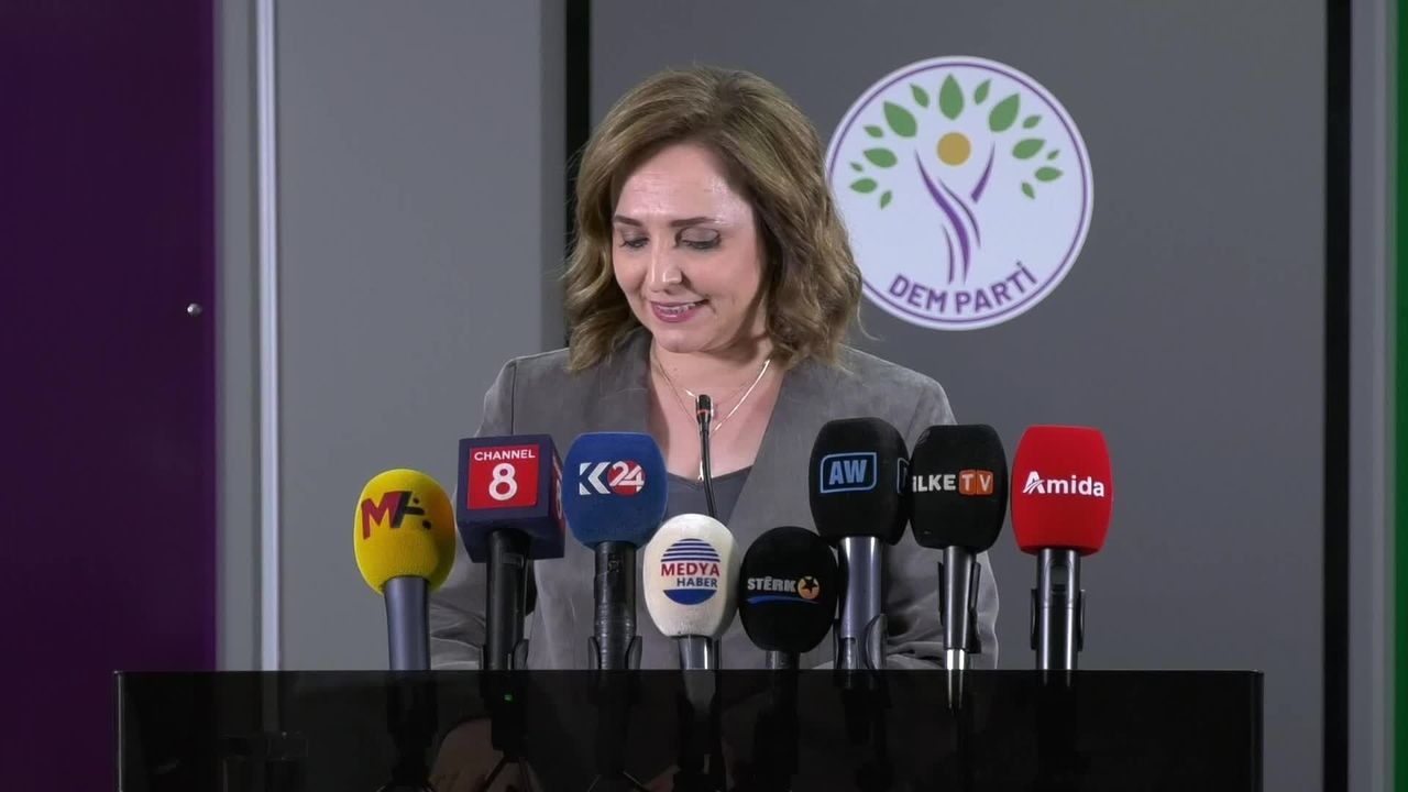 DEM Parti Sözcüsü Ayşegül Doğan, güncel gelişmeler ve Merkez Yürütme Kurulu (MYK) toplantısının gündemlerine ilişkin genel merkezde basın açıklaması yaptı.