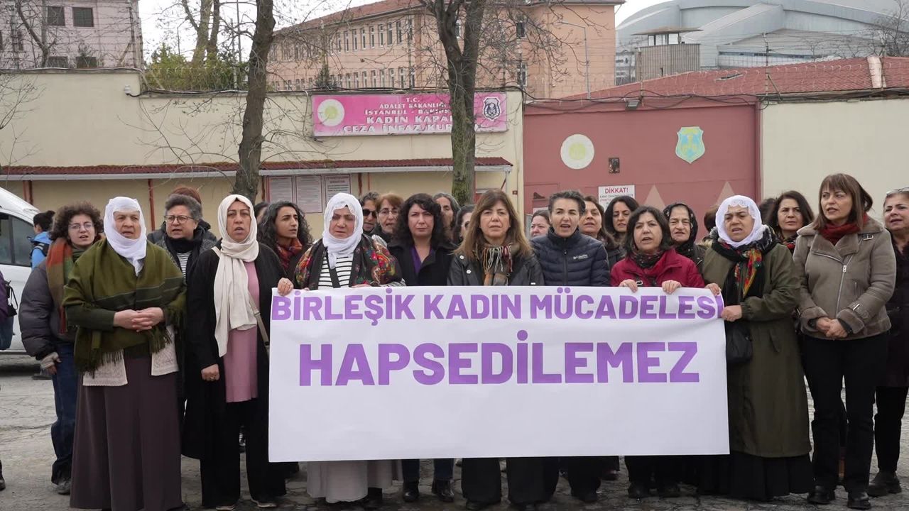 (İSTANBUL) - DEM Parti Kadın Meclisi, Sosyalist Kadın Meclisleri'ne yönelik operasyonlar ve cezaevlerinde yaşanan hak ihlallerine karşı Bakırköy Kadın Cezaevi önünde açıklama yaptı. DEM Parti Kadın Meclisi Sözcüsü Halide Türkoğlu, '8 Mart'a giderken kadın mücadelesi ne bir barikat tanır, ne bir cezaevi tanır, ne bir baskı politikası tanır. Bu 8 Mart'ta biz bir yandan isyanımızı dile getireceğiz ama aynı zamanda bulunduğumuz her alanda birbirimize ses olmaya devam edeceğiz. Hiçbir şekilde bu saldırıları kabul etmiyoruz' dedi.