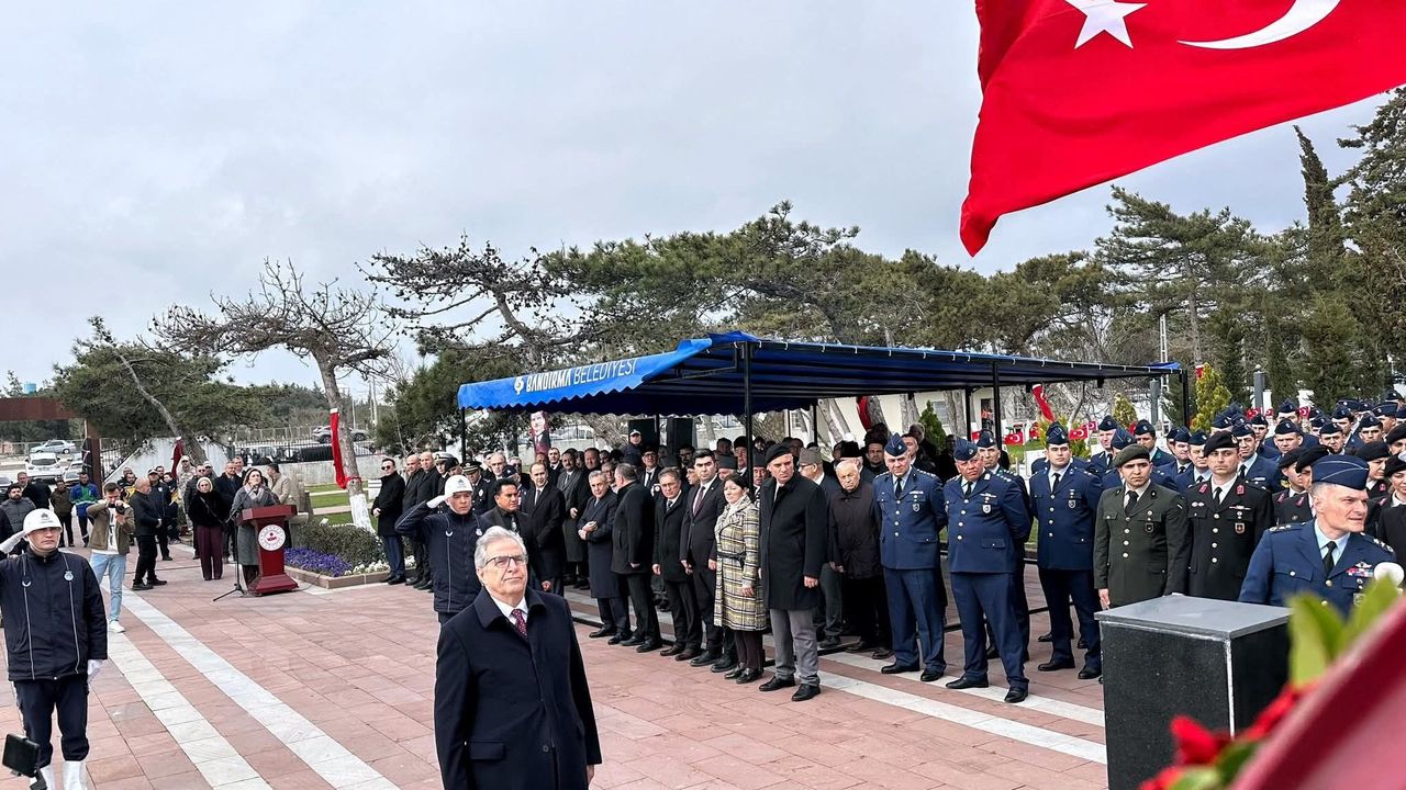 18 Mart Çanakkale Zaferi ve Şehitleri Anma Günü'nde Bandırma Şehitliği'nde düzenlenen çelenk sunma törenine Belediye Başkanı Dursun Mirza ile ilçe protokolü, kurum temsilcileri ve vatandaşlar katıldı. Tören kapsamında saygı duruşunda bulunulurken, İstiklal Marşı okundu ve şehitler için dualar edildi.