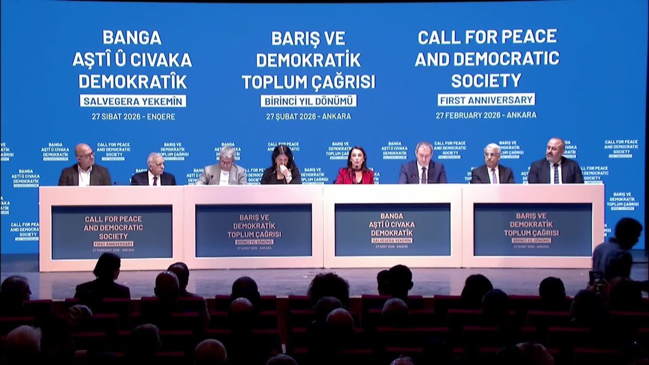 DEM Parti tarafından Yılmaz Güney Sahnesi'nde PKK terör örgütünün lideri Abdullah Öcalan'ın 27 Şubat 2025'te yaptığı Barış ve Demokratik Toplum Çağrısı'nın birinci yıldönümü nedeniyle düzenlenen etkinlikte Kürt sorununun demokratik çözümünde gelinen aşama ve sürecin geleceğine yönelik değerlendirmeler ile Öcalan'ın yeni mesajı kamuoyuyla paylaşıldı. 200'den fazla gazetecinin akredite olduğu öğrenilen programa DEM Parti Grup Başkanvekili Gülistan Kılıç Koçyiğit ve Sezai Temelli, DBP Eş Genel Başkanı Keskin Bayındır, HDK Eş Sözcüsü Meral Danış Beştaş, DEM Parti Sözcüsü Ayşegül Doğan, Diyarbakır Büyükşehir Belediye Başkanı Serra Bucak, siyasetçi Sebahat Tuncer, DEM Parti Milletvekili Saruhan Oluç ve Barış Anneleri de katıldı.