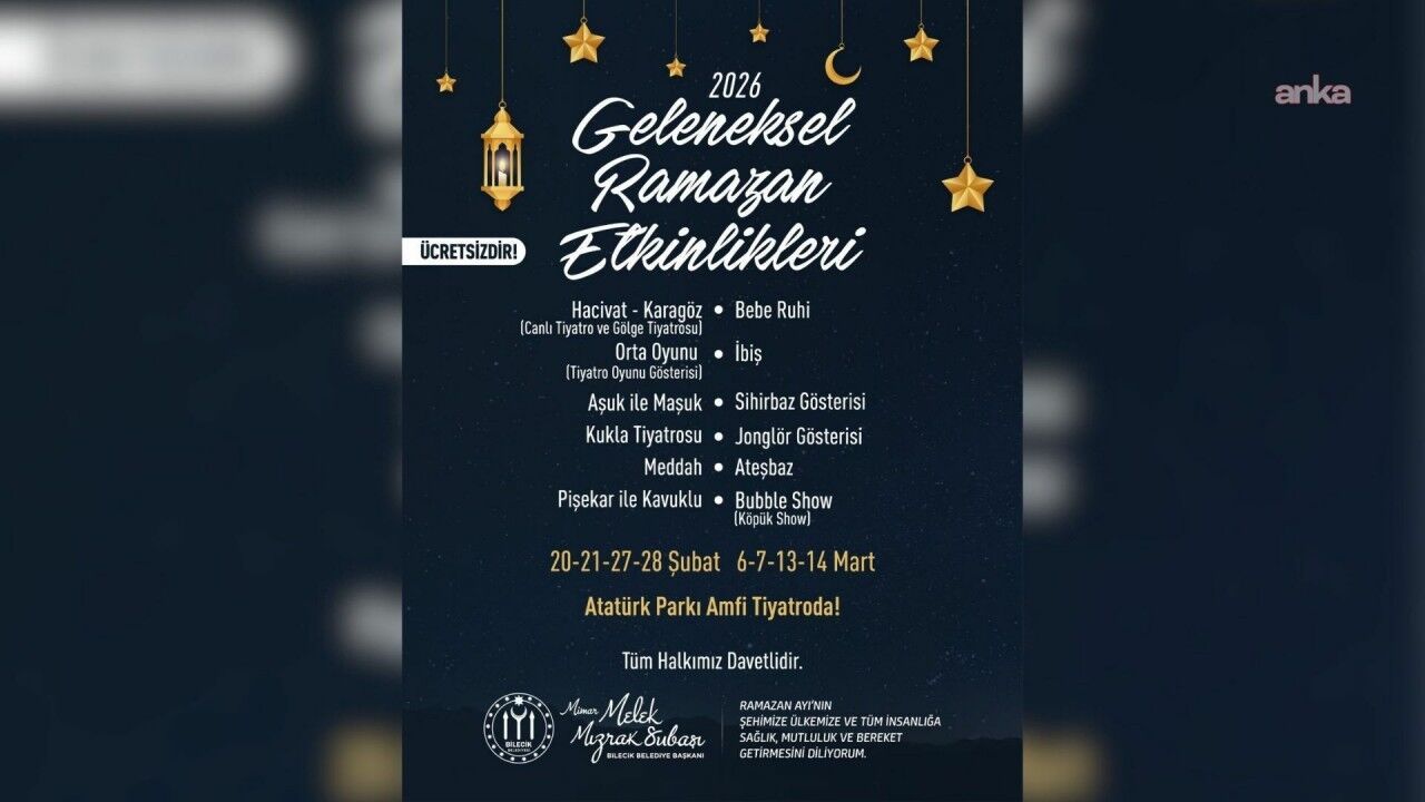 Bilecik Belediyesi tarafından ramazan ayının değerlerini yaşatmak amacıyla hazırlanan program kapsamında 20-21-27-28 Şubat ile 6-7-13-14 Mart 2026 tarihlerinde 10’a yakın etkinlik gerçekleştirilecek.
