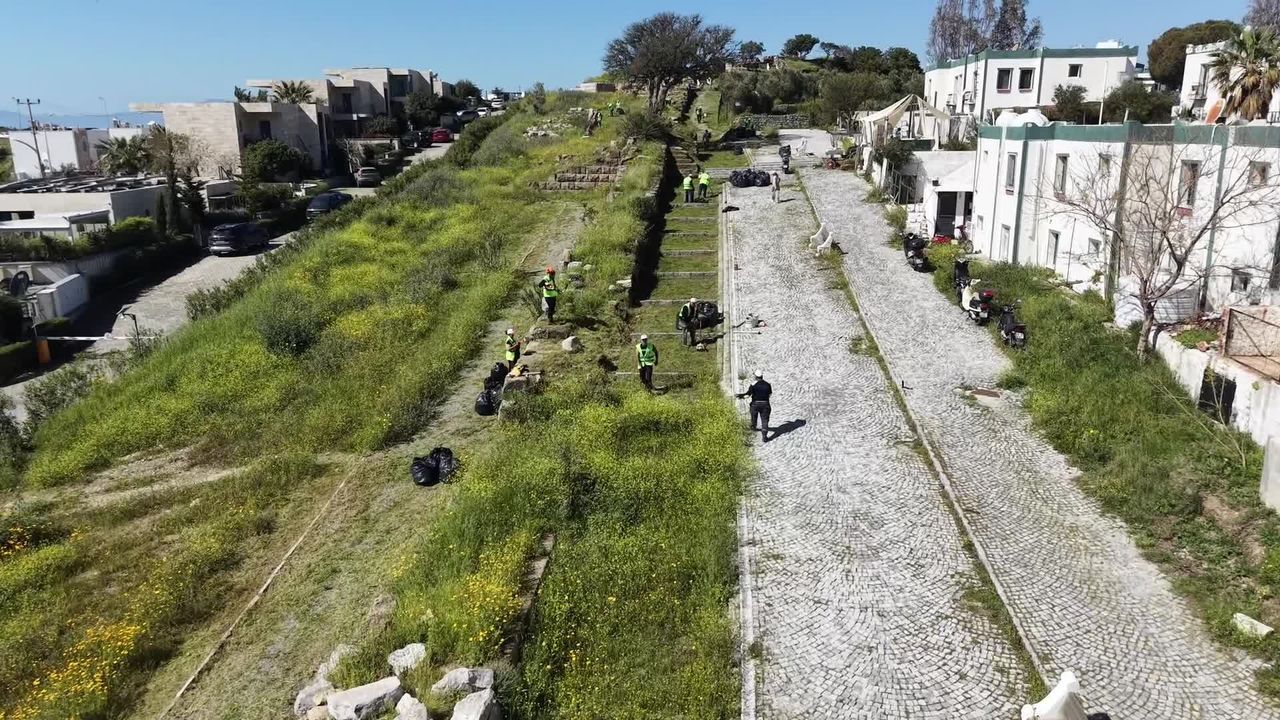 Bodrum Kaymakamlığı ve Bodrum Belediyesi iş birliğinde düzenlenecek etkinlikler öncesinde gerçekleştirilen çalışmalarda yürüyüş yollarında, surlar üzerinde ve yürüyüş yolları çevresinde ot biçimi ile ağaç ve çalılarda budama işlemleri yapılıyor.
