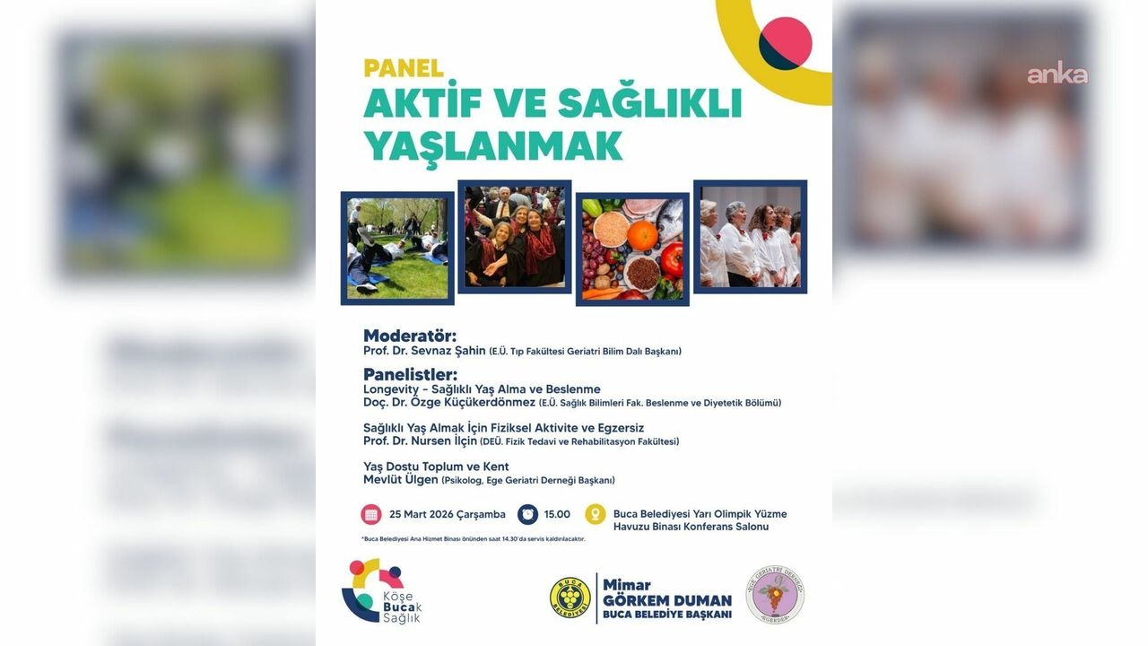 Buca Belediyesi, toplum sağlığını koruma ve yaşam kalitesini artırma çalışmaları doğrultusunda alanında uzman isimleri Bucalılarla bir araya getiriyor. Vatandaşların katılımını kolaylaştırmak amacıyla saat 14.30'da Buca Belediyesi ana hizmet binası önünden servis kaldırılacak olan panelde, sağlıklı yaşlanmanın bilimsel ve pratik yolları paylaşılacak.
