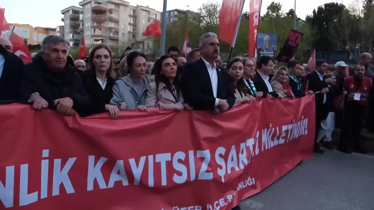 (BURSA) - Bursa'da yurttaşlar, tutuklanmasının ardından Bursa Büyükşehir Belediye Başkanlığı görevinden uzaklaştırılan Mustafa Bozbey'e destek için FSM Caddesi'nde yürüyüş düzenledi. Yürüyüşün ardından düzenlenen mitingde konuşan CHP Bursa İl Başkanı Nihat Yeşiltaş, 'Bugün seçim olsa, yine büyük bir destekle göreve geleceğine herkes emindir. Ancak gelinen noktada teklifler tehdide dönüşmüştür. 'Bize katılmazsan içeri girersin' denmiştir. Ama o, 'Ben Cumhuriyet Halk Partisi'nin evladıyım' demiştir. Ne partisini ne de Bursa'yı satmamıştır. Bugün yaşananların sebebi budur' dedi.