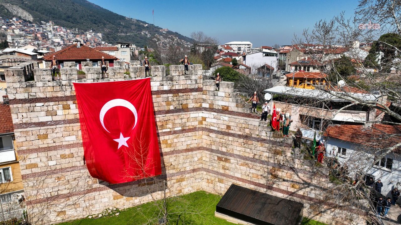 Mehter takımı ile kılıç-kalkan ekiplerinin surlarda yerini almasının ardından tören, İstiklal Marşı ve fetih salasının okunmasıyla başladı.