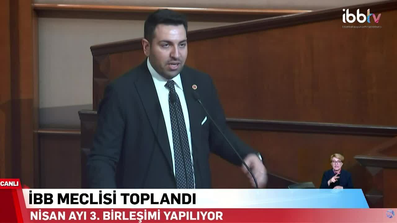 'İBB 5. Dalga operasyonunda gözaltına alındım. 154 gün boyunca 12 metrekarelik bir hücrede kaldım sonra tahliye oldum daha sonra beraat ettim. Türkiye'nin en büyük ikinci meclisinde yaşadıklarımı tarihe not düşmek adına söz aldım. Öncelikle bugün aramızda bulunamayan haksız yere Silivri'de tutsak edilen belediye bürokratlarımızın, belediye emekçilerimizin, meclis üyelerimizin, belediye başkanlarımızın, 50 yılını memlekete hizmete adamış Hasan Başkan'ın ve 60 yıllık aile şirketine kayyum atanan, 2352 yılla yargılanmasına rağmen bir adım dahi geri atmayan, 15,5 milyon yurttaşımızın iradesi, evlatlarımızın umudu, Sayın Ekrem İmamoğlu'nun selamlarını getirdim.