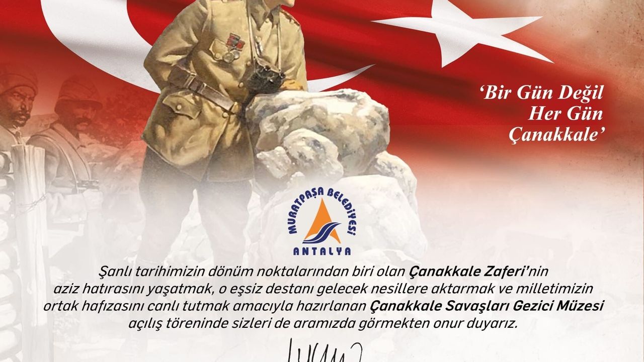 Muratpaşa Belediyesi, Çanakkale Savaşları Gezici Müzesi'nin kapılarını, Abdullah Sevimçok Sivil Toplum ve İnovasyon Merkezi'nde (ASSİM) açıyor. Açılış töreni, 14 Nisan Salı günü saat 11.00'de ASSİM yanında yer alan etkinlik çadırında gerçekleştirilecek. Etkinlikte, Çanakkale Savaşı'nda kullanılan ve Çanakkale ruhunu yansıtan savaş malzemeleri sergilenecek. Çanakkale Zaferi'nin hafızalarda canlı tutulmasını ve tarihi bilinç oluşturulmasını hedefleyen gezici müze, 13-25 Nisan günleri arasında ziyaret edilebilecek. Müze, hafta içi 14.30 -18.00 saatleri arasında, cumartesi günleri ise 09.00-18.00 saatleri arasında açık olacak.