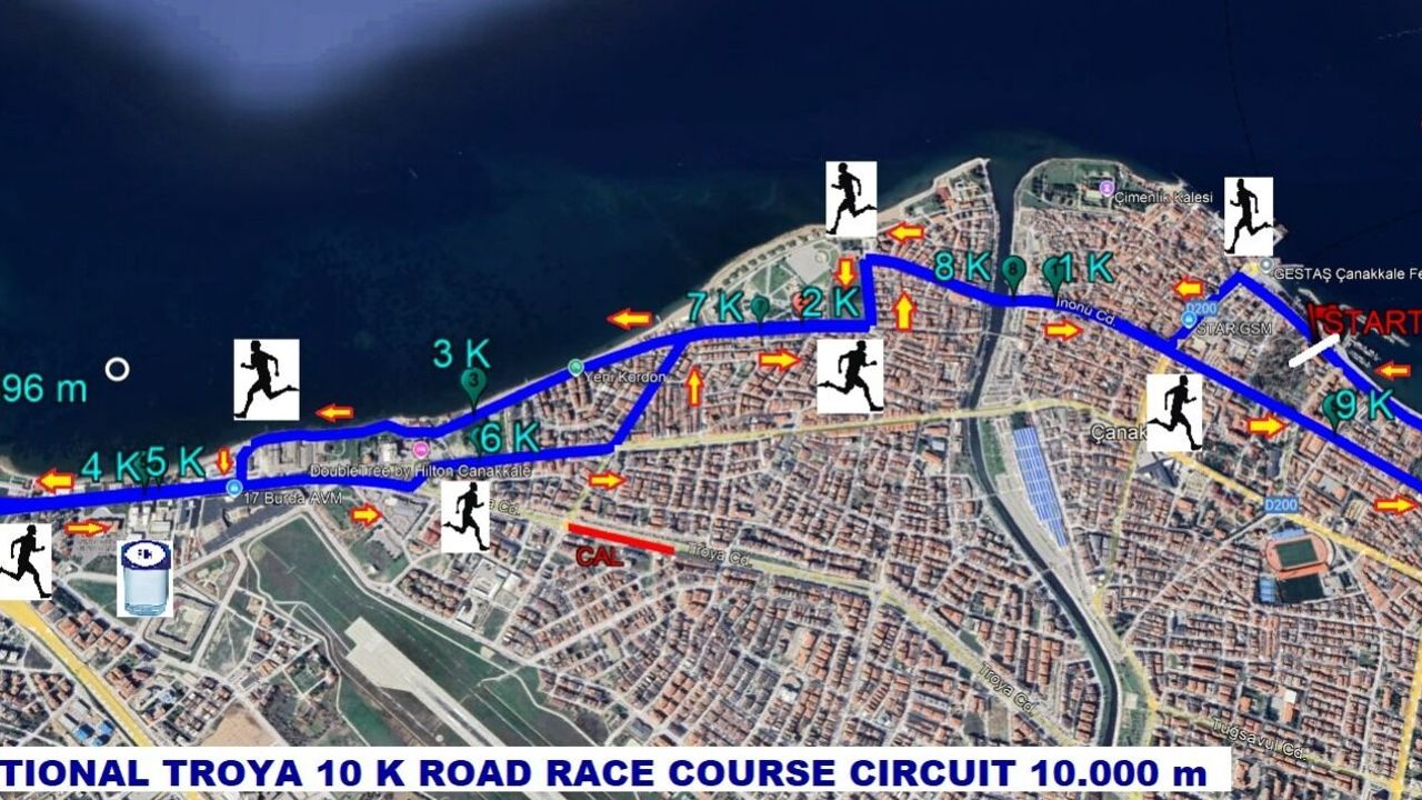 Maraton hazırlıkları 25 Nisan Cumartesi günü saat 18.00'de başlayacak, organizasyon 26 Nisan Pazar günü saat 14.00'e kadar sürecek. Etkinlik kapsamında 42K, 21K, 10K, 6K parkurları ile çocuk koşusu düzenlenecek. Yarışlar, Troya Ören Yeri otoparkı başlangıç noktası olacak şekilde; Tevfikiye Köy Yolu, Çıplak Köy Yolu, Çıplak Köy İçi Yolu, Tevfikiye Köy İçi Yolu, Tevfikiye-Kumkale yolu (stabilize toprak yol), Kumkale Yolu, Kumkale Köy İçi Yolu, Kumkale Şehitliği, Karanlık Liman asfalt yolu, Güzelyalı Köy İçi Yolu, Eski İzmir Caddesi, Kepez Caddesi, Kayserili Ahmet Paşa Caddesi, Demircioğlu Caddesi, İnönü Caddesi, Aziziye Caddesi, Atatürk Caddesi, İbrahim Terzioğlu Caddesi, Kepez Sahil Caddesi, 20. Sokak, İhsan Şenkartal Caddesi, Sahil Yolu Caddesi, Sahil Sokak, 100. Yıl Caddesi, Plaj Caddesi, Ziveriye Sokak ve Piri Reis Caddesi güzergâhını takip ederek Truva Atı önünde sona erecek.