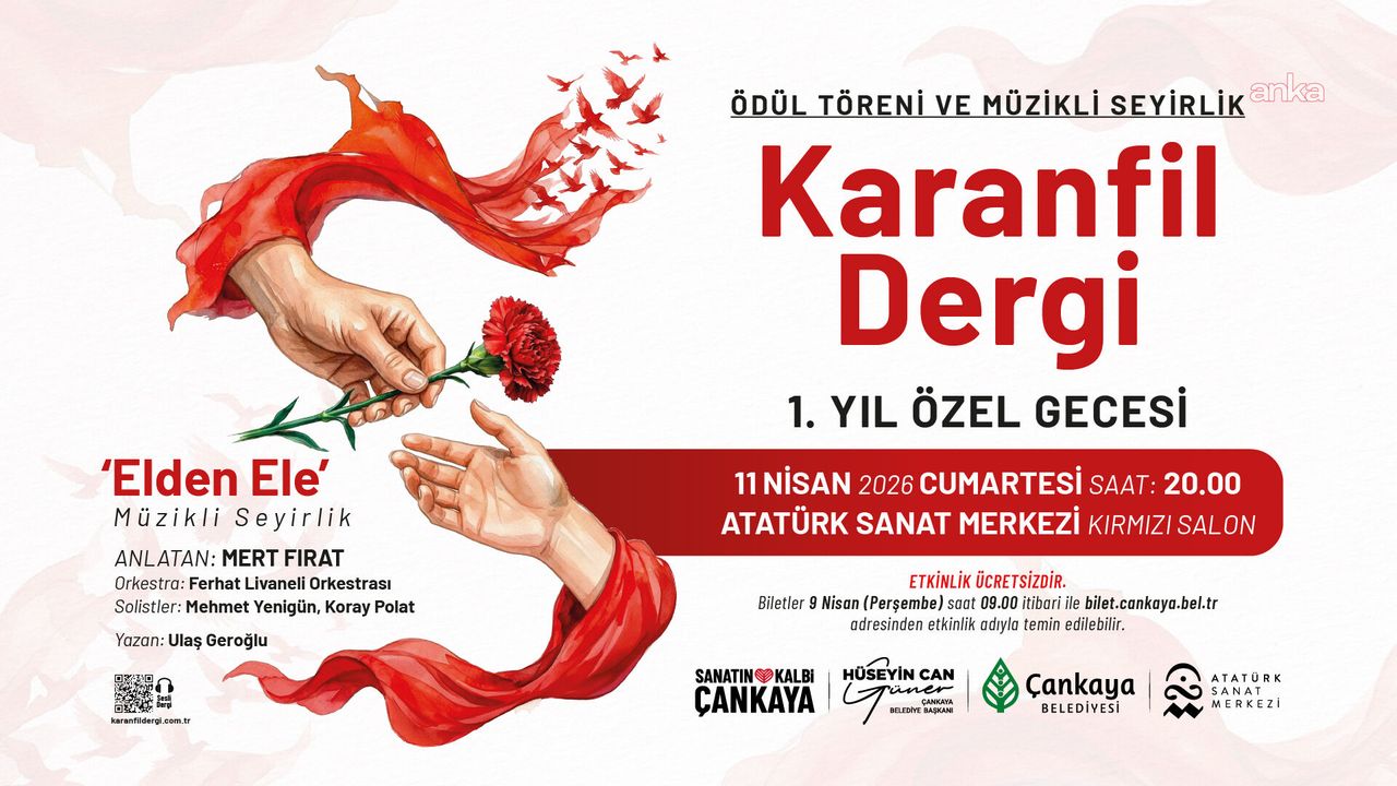 Karanfil Dergi'nin birinci yılına özel etkinlik, 11 Nisan Cumartesi günü saat 20.00'de Çankaya Belediyesi Atatürk Sanat Merkezi Kırmızı Salon'da gerçekleştirilecek.