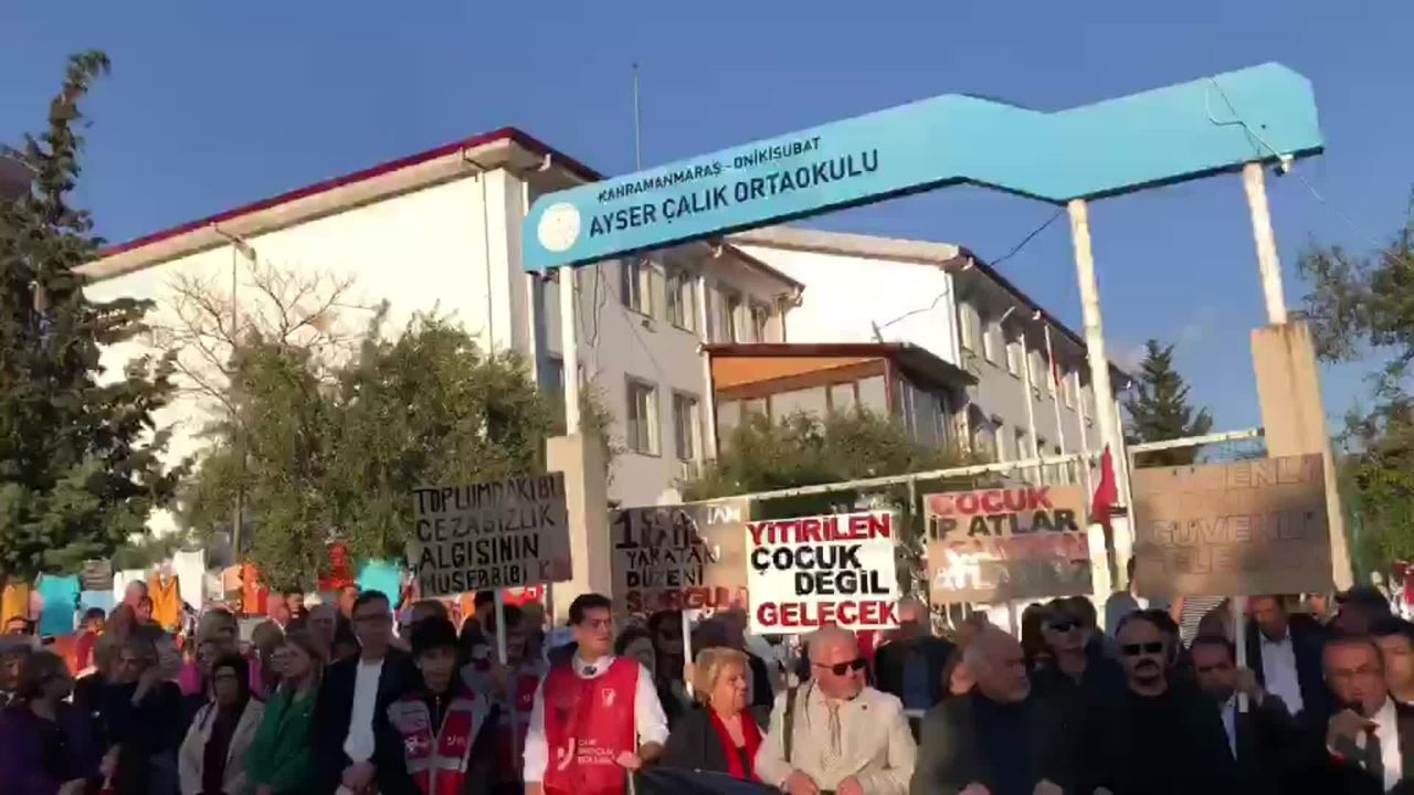 'Vatanı korumak çocukları korumakla başlar' pankartı açılan eylemde, 'Çocuklar ip atlar camdan atlamaz', 'Güvenli okul, güvenli gelecek', 'Bir çocuktan katil yaratan düzeni sorgula', 'Yitirilen çocuk değil, gelecek', 'Yaşamak haktır, suçuma haykır' dövizleri taşındı.