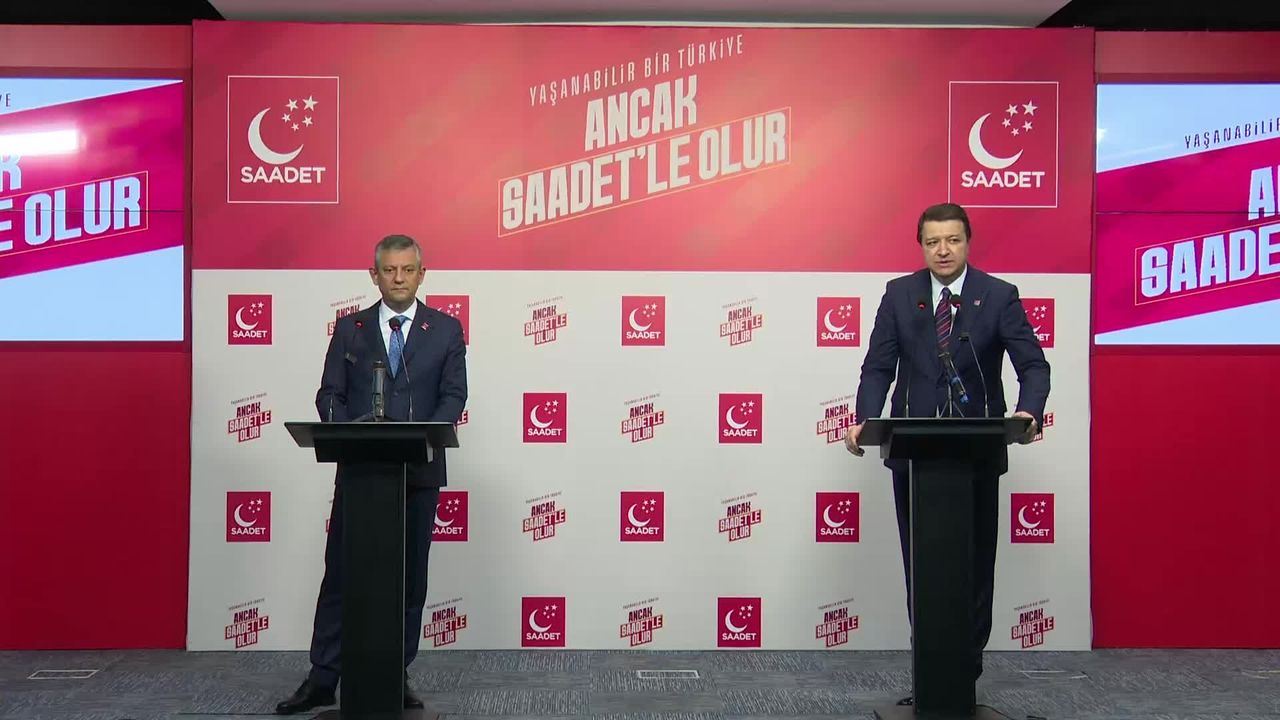 CHP Genel Başkanı Özgür Özel, ara seçim gündemiyle çıktığı siyasi parti turu kapsamında DEM Parti, TİP, EMEP, İYİ Parti, Gelecek Partisi, Yeniden Refah Partisi, Demokrat Parti, DEVA Partisi, Zafer Partisi, SOL Parti ve Anahtar Parti'nin ardından bugün, Saadet Partisi Genel Merkezi'ni ziyaret ederek Genel Başkan Mahmut Arıkan ile görüştü.