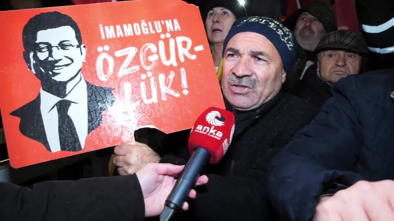 Tutuklu belediye başkanları için özgürlük çağrısında bulunan bir yurttaş, "Başkanımızı istiyoruz. Ekrem Başkanımızı istiyoruz. Yeter artık. Yazık değil mi? Kaç aydır içeride yatıyor. Günah değil mi? Çocuğu var, hayatı var. Ben ona kurban olurum." dedi.