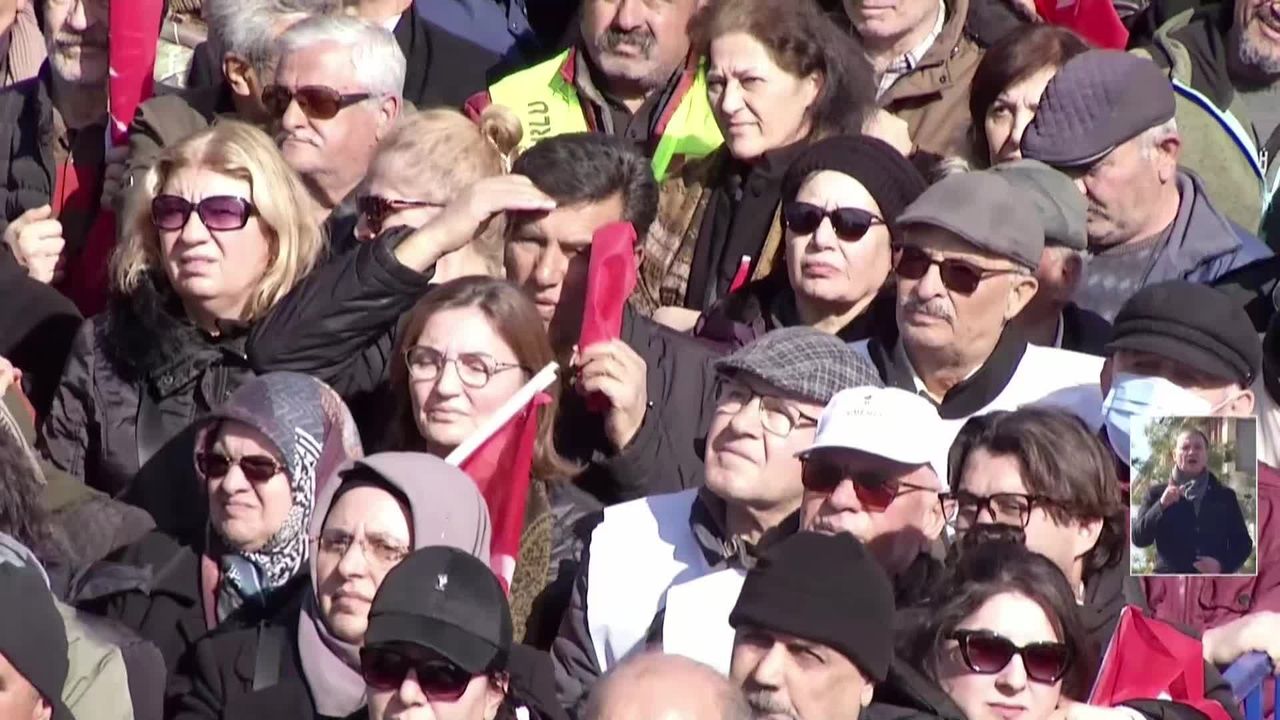 'Biraz önce dediğim gibi değişim iradesiyle, yani seni görmeyeni sen de sandıkta görmeyerek, seni kollamayanı sandıkta göndererek olacak bir iş bu. Asla ve asla bir başımıza olmaz. İşte bu yüzden 28 Şubat günü bu güneşli ama soğuk ve yakan ayazda bu meydanda toplanmanız, bir araya gelmeniz, bir mücadelenin ucundan tutmanız, elinizi taşın altına koymanız, yan yana durmanız ve itiraz etmeniz çok kıymetlidir. Çünkü herkes bilsin ki emekçi kurtulmadan emekli kurtulmaz. Çiftçi kurtulmaz. Gençler umutlanmadan ileri yaştakilerin içi rahat olmaz. Kurtuluş yok tek başına, ya hep beraber ya hiçbirimiz.'
