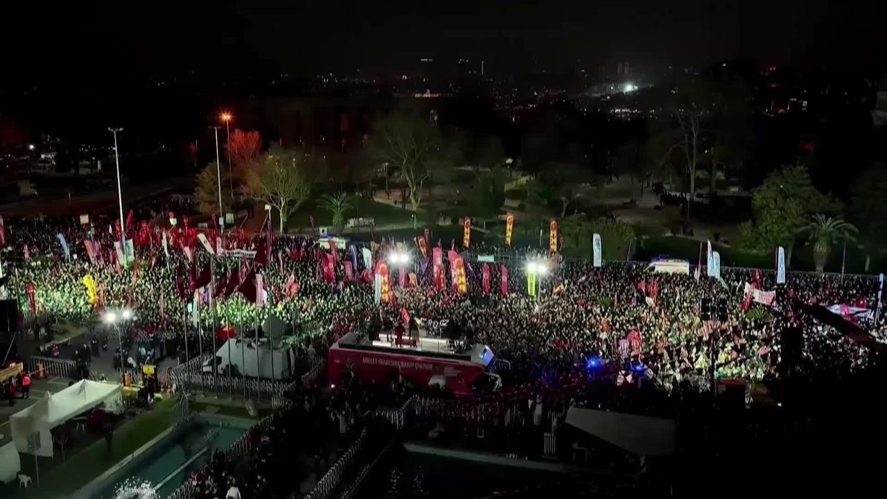 CHP'nin, Cumhurbaşkanı adayı ve İstanbul Büyükşehir Belediye (İBB) Başkanı Ekrem İmamoğlu'nun serbest bırakılması ve erken seçim talebiyle başlattığı 'Millet İradesine Sahip Çıkıyor' mitinglerinin 99'uncusu İmamoğlu'nun tutukluluğunun birinci yılı nedeniyle İBB binasının bulunduğu Saraçhane'de yapıldı.