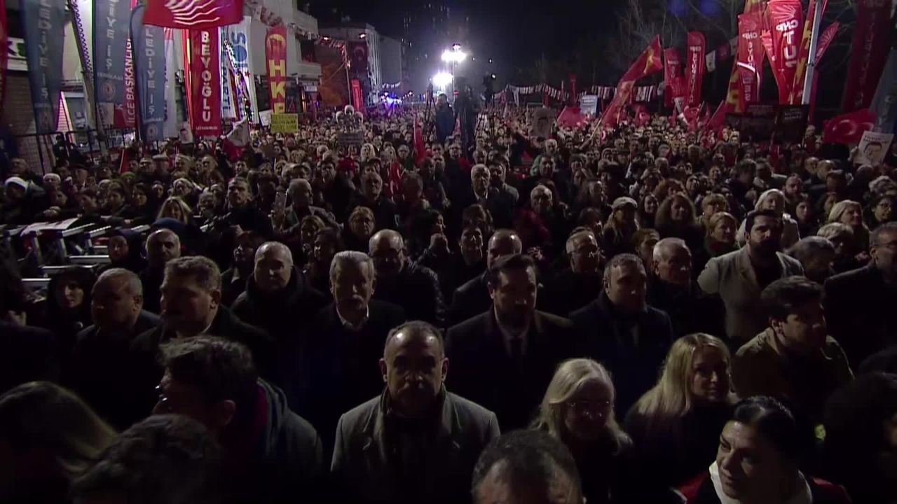 'Düşünün, bir insan aynı zamanda hem seçimlerde hile yapmış, hem diploması sahte, hem hırsız, hem terörist, hem casus, hem de ajan olabilir mi? Bunların hepsi bir kişide olmayacağına göre, bunların hepsini birden bir kişiye yüklediklerine göre karşı karşıya olduğumuz mesele, tarihte rakibinden en çok korkan bir anlayıştır. Vallahi, billahi ben ömrümde rakibinden bu kadar çok korkan birisini görmedim. Bütün mesele Recep Tayyip Erdoğan'ın Ekrem İmamoğlu korkusudur. Buradan AK Parti'nin, MHP'nin değerli seçmenine söylüyorum: Bir kişiye her suçu atıp hiçbirini ispat edemiyorsan o kişide bir şey yok ama sen iftiracısın demektir. 'Yok, ben iftira atmadım, ben ispat ederim' diyorsan; bir kere bunları TRT'de yayınlayıp ya da televizyonlarda yayınlayıp bütün bir yaz, sonbahar boyunca üzerinde tepinip sonra iddianameye yazmamak olmaz. Çünkü bir şeyi iddia ediyorsan televizyonda anlatmayacaksın; karşında bunu söyleyecek, savunacak kimse yok A Haber'de, TGRT'de, TRT'de. Bunu çıkacaksın, iddianameye yazacaksın, cevabını alacaksın. İşte bu yüzden buradan açıkça söylüyoruz: Biz ilk gün durduğumuz yerdeyiz. Bu haksızlığa karşı tutuksuz yargılamayı savunuyoruz. Bu iftiralara karşı televizyonlardan canlı yayın istiyoruz. Canlı yayın. İstanbul'a soruyorum, İstanbul'a: Hatırlıyor musunuz? Devlet Bey 'canlı yayın' dedi. Erdoğan, 'Devlet Bey öyle diyorsa münasiptir' dedi. Ama şimdi 9 Mart geldi, kanun teklifini verdik, AK Parti oylarıyla reddedildi. Buradan soruyorum: Bu yargılamayı televizyondan canlı verebilirler mi? Veremezler. Çünkü attıkları yalanın altında kaldılar. '560 milyar yolsuzluk var' dediler. 560 kuruş ispat edemediler. 'Bin 200 cep telefonu dağıtıldı' dediler. Bir tanesini bile ispat edemediler.