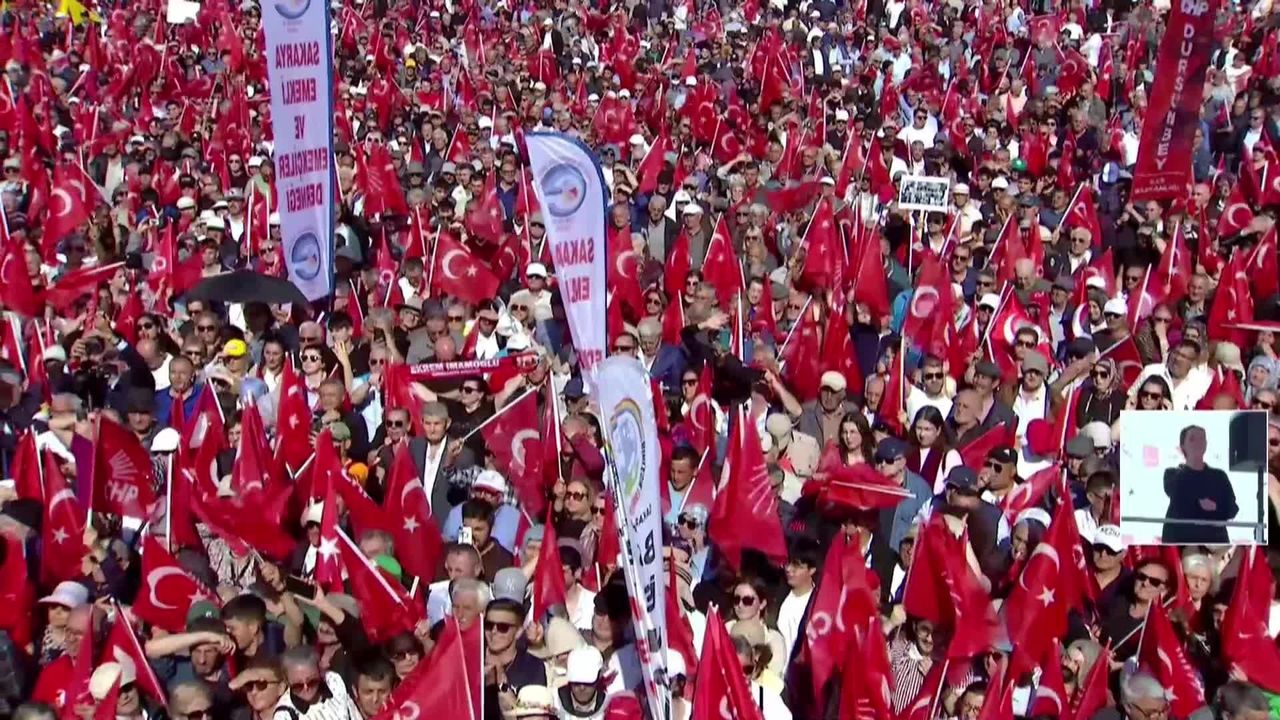 CHP'nin cumhurbaşkanı adayı ve İstanbul Büyükşehir Belediye Başkanı Ekrem İmamoğlu'nun serbest bırakılması ve erken seçim talebiyle başlattığı 'Millet İradesine Sahip Çıkıyor' mitinglerinin 106'ncısı Sakarya'da yapılıyor.