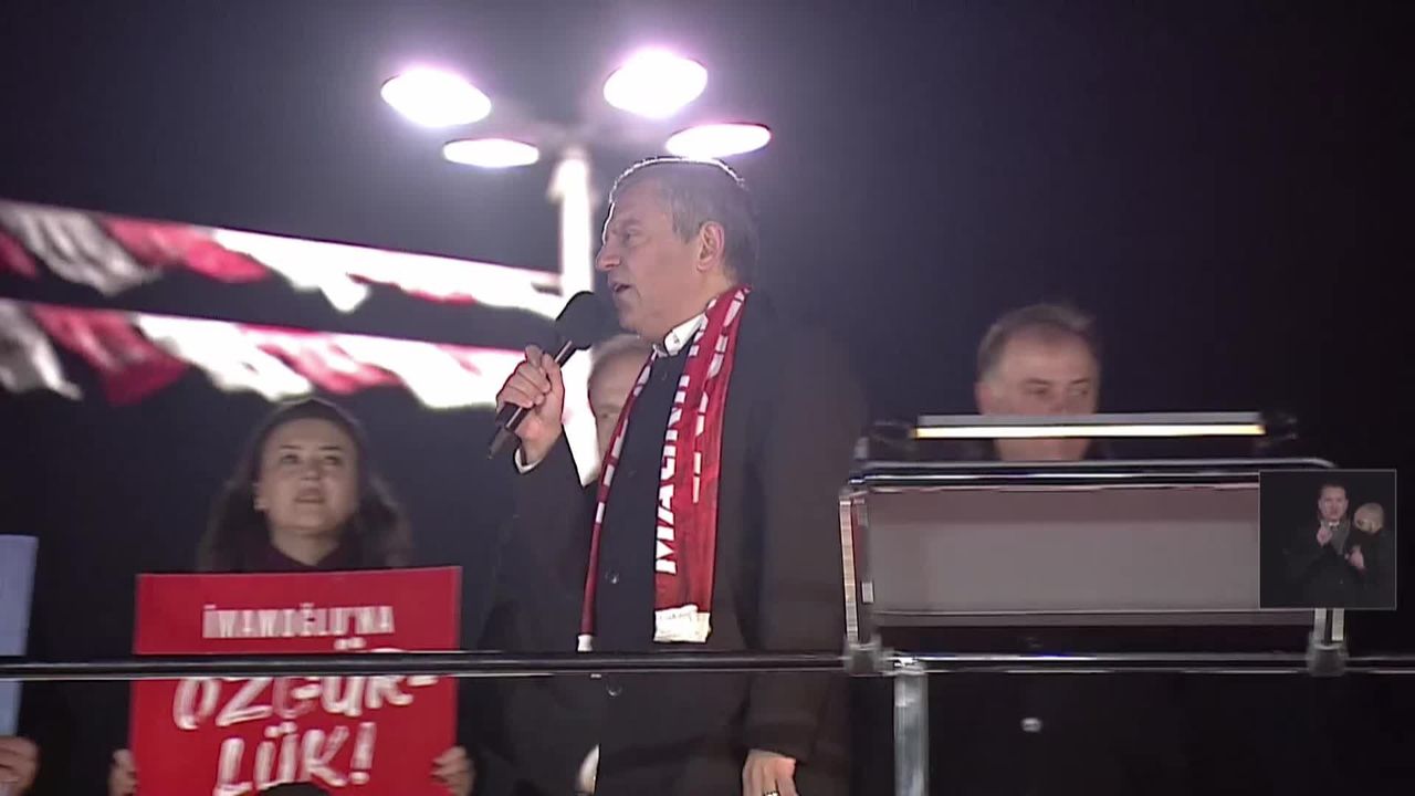 Hem dünya hem bölgemiz kritik bir eşikten geçiyor. Türkiye'nin tüm tehditlere karşı bir, bütün, güçlü olması lazım. Güya ülkeyi yönetmeye vazifeli iktidar partisi, ülkeyi bölmeye, milleti kutuplaştırmaya devam ediyor. 19 Mart darbesinin üzerinden 357 gün geçti. Türkiye'de iç cepheyi zayıflatan da dışarıda ateş çemberi varken, içeride tartışmalarla enerjimizi sömüren de bu iktidardan başkası değildir. İç cephenin tahkim edilmesi, Türkiye'nin bir ve beraber olmasının birinci düşmanı AK Parti'nin kara düzenidir. Erdoğan bana bir çağrı yapmış, ben de kendisine sesleniyorum. Biz bu ülkenin birliği için beraberiliği için her şeyi yapmaya hazırız. Ancak bu kadar zulüm, bu kadar haksızlık, bu kadar eşitsizlik olmaz. Emeklinin elinden tutan, asgari ücretliyi gören, asgari ücret artışını işverenin sırtına yüklemeyen, çiftçisine sahip çıkan, öğrencisinin geleceğini karartmayan politikalara hep birlikte sahip çıkabiliriz. Tutuksuz yargılama bu ülkede tansiyonu düşürür. Arkadaşlarımızın uğradığı iftiralar var. Kendimize, partimize, arkadaşlarımıza, cumhurbaşkanı adayımıza güveniyoruz. Kendine güveneni, kanun teklifimize destek vermeye, davaları televizyondan canlı yayınlamaya, iddiaları da cevapları da milletten saklamamaya, TRT'den canlı yayınlamaya davet ediyoruz. Biz kendimize güveniyoruz, Erdoğan da güveniyorsa karşımıza çıksın.