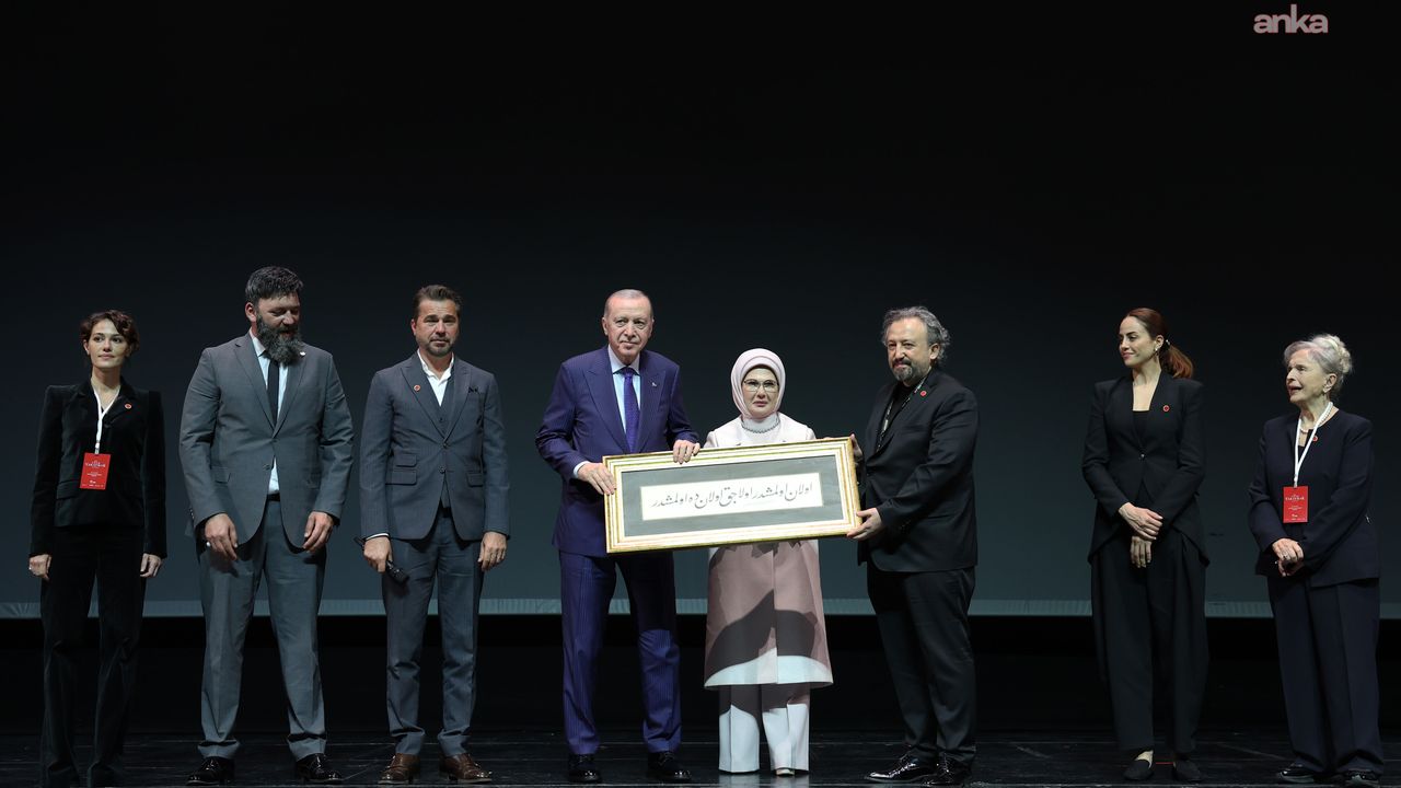 Programda, Cumhurbaşkanı Erdoğan ile eşi Emine Erdoğan'a filmin yönetmeni Murat Çeri tarafından hediye takdim edildi.