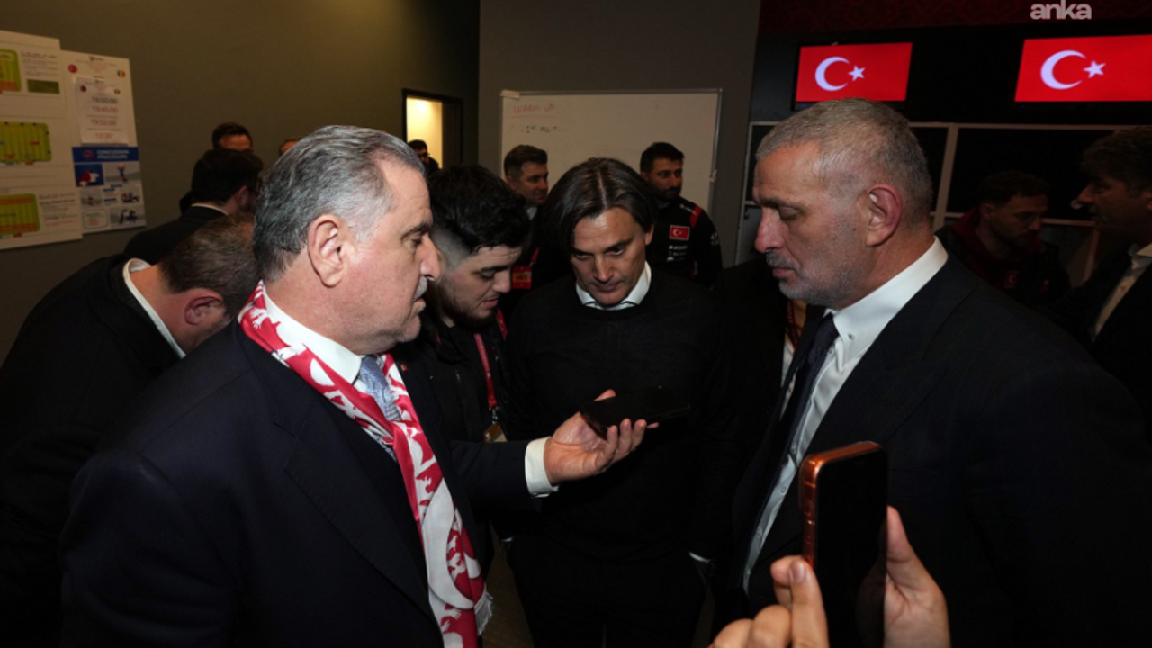 Soyunma odasına inen Gençlik ve Spor Bakanı Osman Aşkın Bak ve TFF Başkanı İbrahim Ethem Hacıosmanoğlu da Vincenzo Montella'yı ve millileri tebrik ederek play-off finali için başarılar diledi.