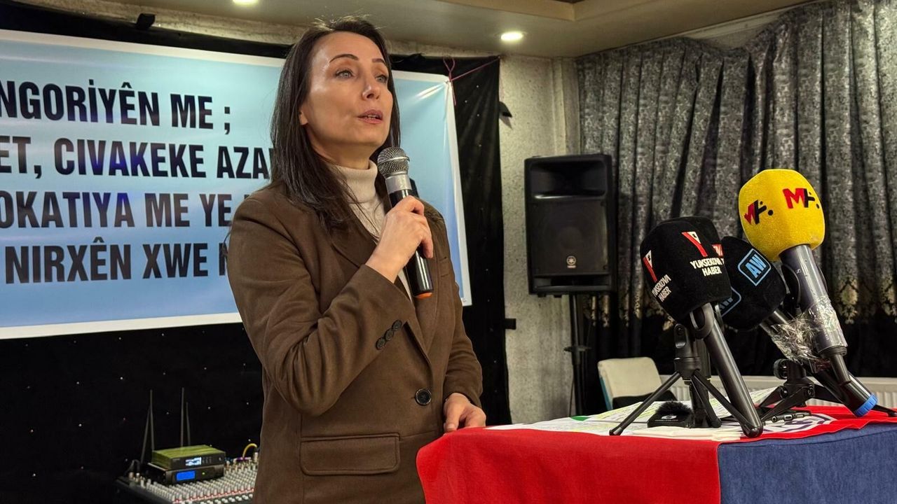 'Bizler geçtiğimiz 27 Şubat'ta Ankara'da bir araya gelerek bir senelik süreci değerlendirdik ve Sayın Öcalan'dan gelen yeni mesajı değerli halklarımızla paylaştık. Bizler birçok kürsüden her fırsatta ifade ettik. Bakın bu süreç sürüncemede bırakılacak bir süreç değil. İran'da savaşın bu kadar kızıştığı bir yerde saldırıların Irak'a, Lübnan'a, Yemen'e, bütün Körfez ülkelerine yayıldığı bir yerde elbette ki atılması gereken somut adımlar var ve artık Orta Doğu'daki bu gelişmeler, Kuzey Afrika'daki bu gelişmeler Türkiye'deki süreçte beklemememiz gerektiğini bize bir kez daha gösterdi. Bakın bugün Türkiye Dışişleri Bakanlığı bir açıklama yaptı. Türkiye'de Hatay Dörtyol'da balistik mühimmat diye nitelendirdikleri yine füze midir, başka bir şey midir? Bilmiyoruz. Türkiye'ye düşmüş. Savaşın Türkiye'ye sıçramasının bizler istemiyoruz. Çok net. Bu savaş Türkiye'ye sıçramamalı. Ama bütün bölgeyi kaos altına almış olmuş olan bu savaşta Türkiye'nin özellikle Sayın Abdullah Öcalan'ın başlatmış olduğu bu süreci doğru değerlendirmeli, stratejik değerlendirmeli ve iyi değerlendirmeli. Tekrar ediyorum. Sürünceme, zamana yayma dönemi artık bitmelidir. Sayın Öcalan'ın ikinci dönemi başlamıştır bu sürecin dediği bu dönemde Orta Doğu'daki bütün bu gelişmelerin ışığında bu süreci yavaşlatmak demek ateşe körükle gitmek demektir. Bunu kabul etmiyoruz. Türkiye'de biz onurlu bir barışın tesis edilmesini istiyoruz.'