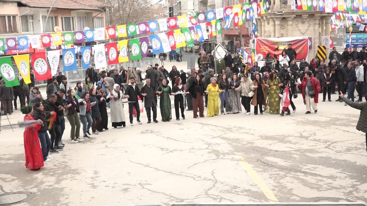 (MALATYA) - DEM Parti Malatya İl Örgütü tarafından Turan Emeksiz üst kavşağında Nevruz kutlaması gerçekleştirildi. Kutlamaya DEM Parti Tunceli Milletvekili Ayten Kordu ve DEM Parti Van Milletvekili Sinan Çiftyürek katıldı. Kordu, 'Bu sorun terör sorunu değildir, bu sorun bir güvenlik sorunu değildir. Bu sorun özgürleşme sorunudur. Bu sorun onurlu ve eşit yaşama sorunudur. Bu sorun halkların kendisini özgürce ifade edebildiği, hukuksal olarak kendisini güvende hissedebileceği bir sorundur' ifadesini kullandı.