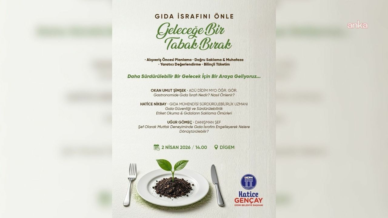 Didim Belediyesi'nin 2 Nisan 2026 Perşembe günü saat 14.00'te Didim Gençlik Merkezi'nde düzenleyeceği 'Geleceğe Bir Tabak Bırak' başlıklı panel kapsamında katılımcılara doğru gıda tüketimi, gıdaların sağlıklı saklama yöntemleri, mutfakta israfı önlemenin pratik yolları ve sürdürülebilir yaşam alışkanlıklarına ilişkin kapsamlı bilgiler sunulacak.