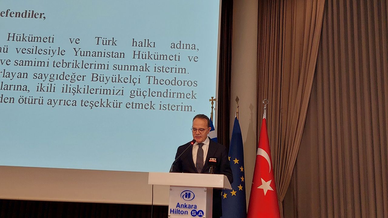 (ANKARA) - Yunanistan'ın Ankara Büyükelçisi Theodoros Bizakis, Yunanistan'ın Bağımsızlık Günü dolayısıyla düzenlenen resepsiyonda, 'Yunanistan ve Türkiye her zaman komşu olacaktır. Ancak halklarımız ve ülkelerimiz açısından barış, ilerleme ve refah dolu bir geleceğe doğru, diyalog ve uluslararası hukuk temelinde komşuluk ilişkilerimizi nasıl geliştireceğimiz bizim elimizde' dedi. Dışişleri Bakan Yardımcısı Büyükelçi Mehmet Kemal Bozay, 'Zorlu zamanlardan geçmekte olan iki komşu ülke olarak bugün üzerimize düşen görev, ileri görüşlü liderlerimiz Atatürk ve Venizelos'un bize emanet ettiği mirası korumak ve geliştirmektedir. Türkiye ile Yunanistan arasında güçlü bir bağ, bölgemiz ve dünya için de bir umut ışığı olacak' ifadelerini kullandı.