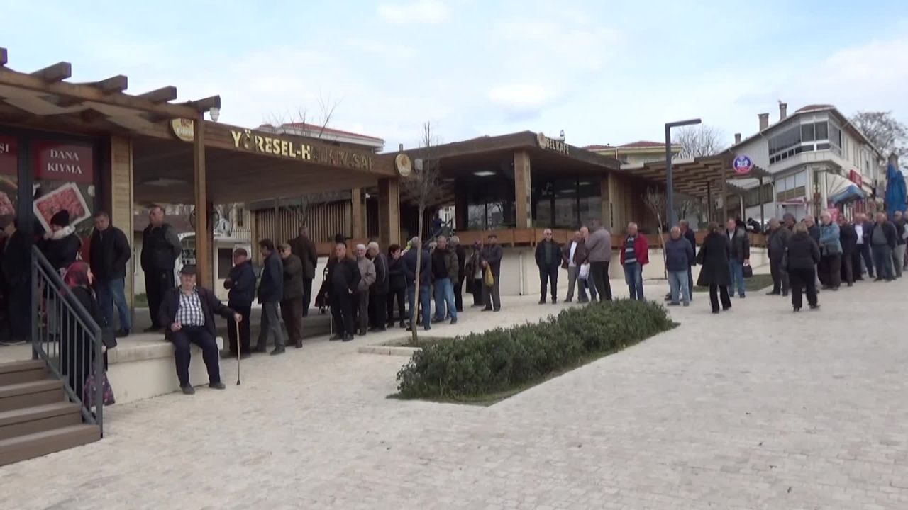 Edirne Halk Kasap'ta kıymanın kilosu 660 lira, dana kuşbaşı, köfte ve sucuğun kilosu ise 730 liradan satılıyor. Yurttaşlar bayram alışverişlerinde uygun fiyata et alabilmek için Halk Kasap önünde uzun kuyruk oluşturdu. Hayrettin Yılmaz, 150-200 lira ucuza et alabilmek için kuyrukta beklediğini söyledi.