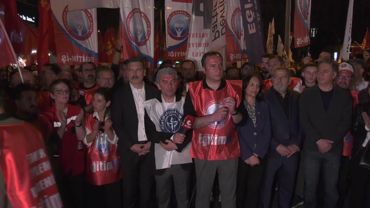 (ANKARA) - Eğitim-İş ve Hürriyetçi Eğitim Sendikası'nın, Şanlıurfa ve Kahramanmaraş'taki okul saldırılarını protesto etmek için başlattığı eylem 11'inci saatinde basın açıklaması ile son buldu. Eğitim-İş Sendikası Genel Başkanı Kadem Özbay, 'And olsun ki bu karanlık düzen dağılana kadar, umut vaat eden bir ülke için, barikat da kursalar, iddia da etseler asla boyun eğmeyeceğiz. Çünkü biz biliyoruz ki herkes günün sonunda tarihle yargılanır. Bugün birlikte bu tarihi yazdık. Yarın da bu mücadeleyi birlikte devam ettireceğiz' dedi.