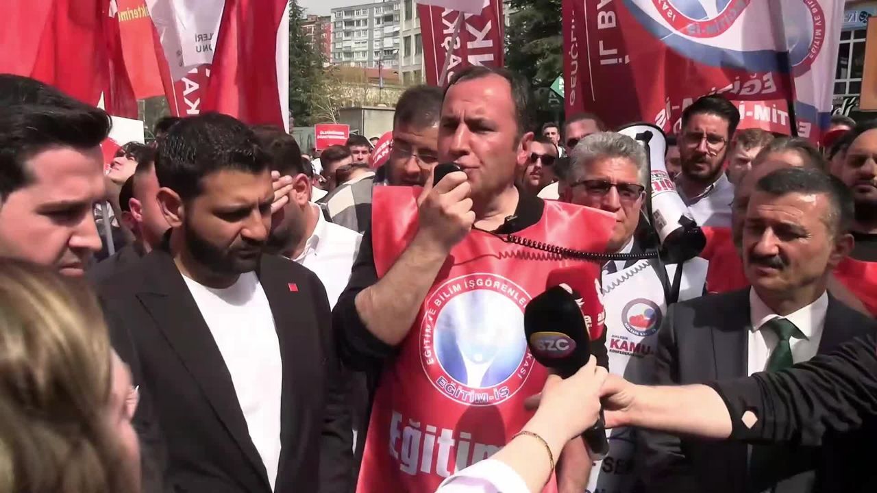 İYİ Parti Genel Başkan Yardımcısı Fatih Koca da 'Biz buradan emniyet teşkilatımızın kıymetli mensuplarına sesleniyoruz. Polis mensubu arkadaşlar, buradaki insanlar öğretmen. Bu öğretmenler sizlerin yetişmesinde emek veren öğretmenlerdir. Gece gündüz çalışan, dün Kahramanmaraş'ta evlatları ölmesin diye canını siper eden öğretmenlerdir. Öğretmenlerin haklı sesine kulak verin. Kanunsuz emri dinlemeyin. Öğretmenlerimiz basın açıklaması yapmak istiyor. Buradan Yusuf Tekin'e sesleniyoruz: Okullara sabun koyamayan Yusuf Tekin, okullara güvenlik koyamayan Yusuf Tekin, daha kaç canımızı, daha kaç öğretmenimizi kurban edelim istiyorsun? Daha kaç öğretmenimiz şehit olsun istiyorsun?' şeklinde konuştu.