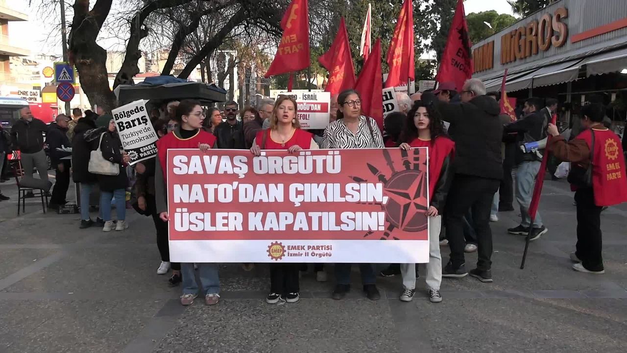 Emek Partisi İzmir İl Örgütü, Şirinyer'de bir araya gelerek NATO'nun önüne yürüyüş gerçekleştirdi, basın açıklaması yaptı. Açıklamayı okuyan Emek Partisi İzmir İl Başkanı Elif Çuhadar, 'İran, Ortadoğu'yu kana bulayan emperyalist saldırganlığın yeni bir halkası oldu. Ortadoğu halklarını yıllardır süren ekonomik ambargolar ve askerî müdahalelerle yoksulluğa ve ölüme sürükleyen emperyalist barbarlık, bugün İran'a yönelik saldırıların arkasında da bölgeyi kendi çıkarları doğrultusunda yeniden yapılandırma hedefindedir. Bu savaş aynı zamanda sürmekte olan İran halkının özgürlük ve demokrasi mücadelesini gasp ederek halkların mücadelesini çalmaya ve onları yeni bağımlılık ilişkilerine mahkûm etmeye yöneliktir. ABD ve kuklası İsrail'in; geçmişte Irak'ta yaptıkları gibi savaşçı politikalarını haklı çıkarmak için kullandıkları 'özgürlük getirme' maskesi düşmüştür. İran halkını özgürleştirmek değil, bölgede ABD karşıtı direnç odaklarını kırmayı amaçlamaktadırlar. Emperyalizm, her zamanki 'haydut devlet' yöntemleriyle, kendi siyasi ve ekonomik çıkarları doğrultusunda bölgeyi yeniden biçimlendirmenin peşindedir. ABD'nin İran ve diğer ülkelere yönelik saldırgan politikası, derinleşen emperyalist çelişkilerle birlikte emperyalist stratejinin de bir parçasıdır' dedi.
