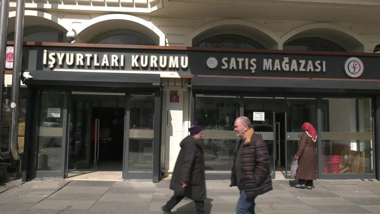 Cezaevlerindeki hükümlülerin İşyurtları Kurumu bünyesindeki atölyelerde ürettikleri ürünlerin uygun fiyatlarla satışa sunulduğu işyurtları mağazalarından biri Ankara Kızılay'daki satış mağazasında, emekliler uygun fiyatlı gıda alabilmek için uzun kuyruk oluşturdu.