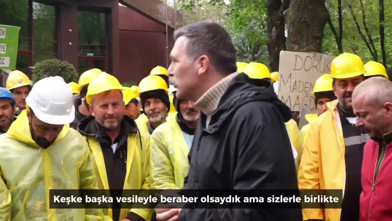 (ANKARA) - Türkiye İşçi Partisi (TİP) Genel Başkanı Erkan Baş ile TİP Ankara İl Örgütü, Kurtuluş Parkı'nda Bağımsız Maden-İş Sendikası öncülüğünde direnişlerini sürdüren Doruk Madencilik işçilerini ziyaret etti.