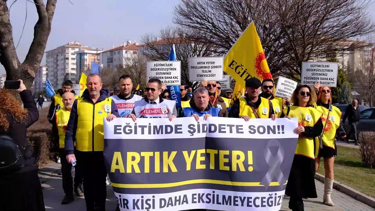 İstanbul Çekmeköy'de öğretmen Fatma Nur Çelik'in hayatını kaybettiği 17 yaşındaki öğrencinin bıçaklı saldırısı, Eskişehir'de öğretmenler tarafından protesto edildi. Eğitim Sen, Hürriyetçi Eğitim Sen ve TEÇ SEN'in çağrısıyla Eskişehir Uğur Mumcu Parkı'nda bir araya gelen öğretmenler, 'Şiddetin kölesi olmayacağız', 'Yasta değil isyandayız', 'Öğretmen düşmanı Yusuf Tekin istifa', 'Eğitime bakan istiyoruz' sloganlarıyla İl Milli Eğitim Müdürlüğü'ne yürüdü. Eğitim Sen Eskişehir Şube Başkanı Özkan Demirkol, yaptığı açıklamada şu ifadeleri kullandı: