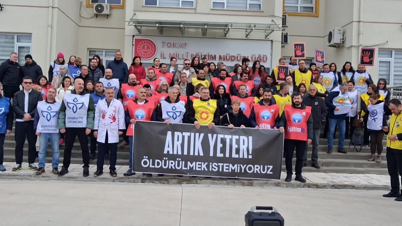 Hürriyetçi Eğitim Sen Tokat Şube Başkanı Seyfi Karlı ise, 'Eğitim kurumları alarm veriyor. Öğretmenler korunmuyor, adeta kaderine terk ediliyor. Artık her okulda etkin ve sürekli bir güvenlik sistemi kurulması devletin asli görevidir' diye konuştu.