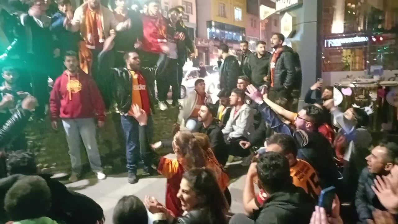 Maçın son düdüğü ile birlikte evlerinden ve maçları izledikleri kafelerden kendilerini dışarı atan Galatasaraylılar, şehrin en işlek yeri olan Faikbey Caddesi ile Atatürk Caddesi'nin kesiştiği at heykeli önünde toplandılar. Burada meşaleler yakan ve takımlarının bayraklarını açan Galatasaraylılar galibiyeti kutladılar.
