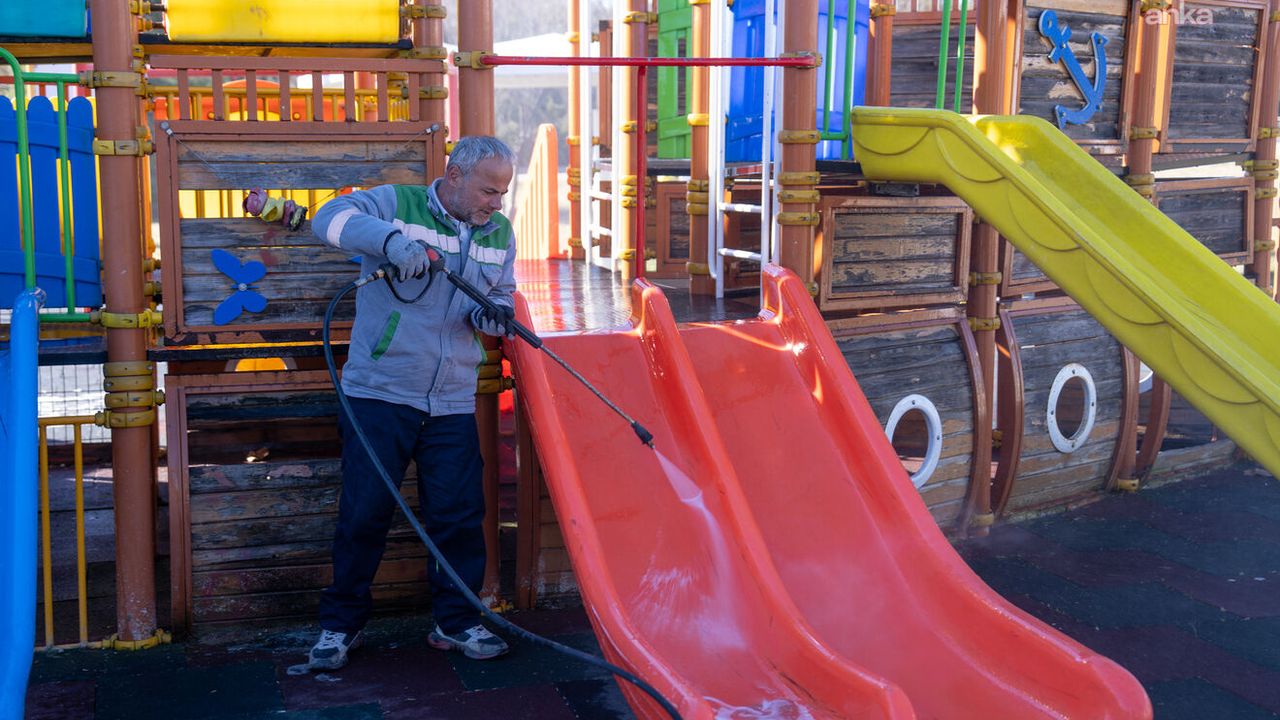 Havanın ısınmasıyla birlikte vatandaşların özellikle çocuklarıyla birlikte vakit geçirdiği park ve yeşil alanlarda temizlik çalışmaları hız kazandı. Gölbaşı Belediyesi ekipleri, ilçedeki parkları daha temiz ve güvenli hale getirmek için kapsamlı bir çalışma başlattı. Bu kapsamda Alparslan Türkeş Parkı ve Atatürk Sahil Park'ta bulunan oyun grupları ile park alanları belediye ekipleri tarafından detaylı şekilde temizlendi. Oyun grupları tazyikli suyla yıkanarak hijyenik hale getirilirken, park içerisindeki yürüyüş yolları ve ortak kullanım alanları süpürge ve üfleme makineleriyle süpürüldü. Temizlik çalışmalarının yanı sıra ilçedeki birçok parkta çocuk oyun grupları da yenilenerek daha güvenli ve modern hale getirildi. Çocukların güvenle oyun oynayabileceği alanlar oluşturulurken, ailelerin de daha temiz ve düzenli ortamlarda vakit geçirebilmesi hedefleniyor.