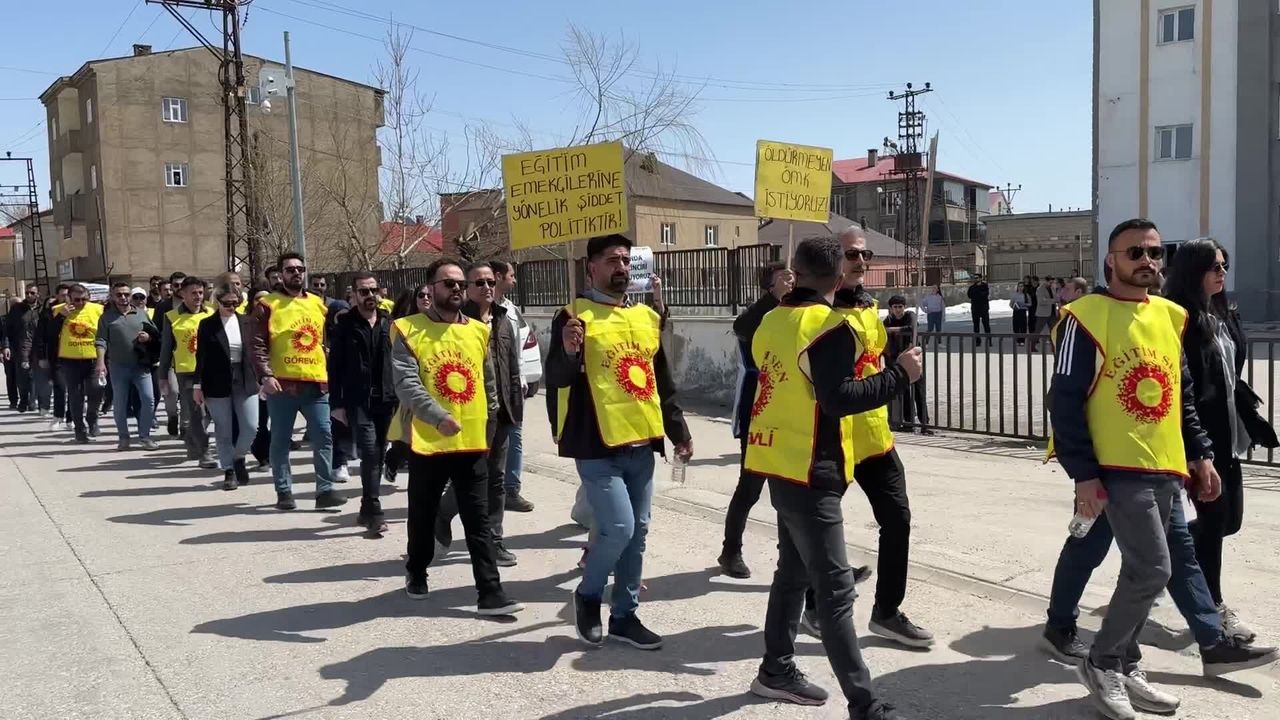 (HAKKARİ) - Hakkari'nin Yüksekova ilçesinde son günlerde okullarda yaşanan silahlı saldırılar protesto edildi. KESK ve Eğitim-Sen'in düzenlediği eylemde konuşan Eğitim-Sen Hakkari Şube Başkanı Mehmet Canan, okullarda yaşanan şiddetin, eğitimden kültüre, ekonomiden sosyal politikalara kadar sürdürülen yanlış politikaların doğrudan sonucu olduğunu vurguladı.