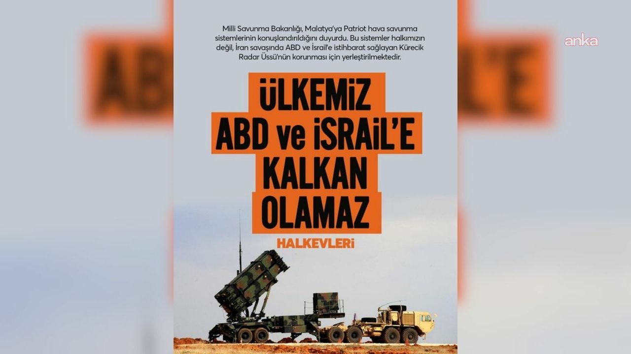 'Ülkemizin savaş sahası haline getirilmesine, ABD ve İsrail'e kalkan olmasına izin vermeyelim. Milli Savunma Bakanlığı, Malatya'ya Patriot hava savunma sistemlerinin konuşlandırıldığını duyurdu. Bu sistemler halkımızın değil, İran savaşında ABD ve İsrail'e istihbarat sağlayan Kürecik Radar Üssü'nün korunması için yerleştirilmektedir. Saray iktidarı 2012'de NATO'nun Kürecik Radar Üssü'nü aktifleştirerek emperyalist saldırganlığın hizmetinde, ülkemizi bir savaş sahasına çevirmiştir. Türkiye'nin güvenliği Patriotların yerleştirilmesiyle değil emperyalist-siyonist saldırganlığın hizmetindeki Kürecik Radar Üssü'nün kapatılması ile sağlanabilir. NATO'dan çıkılsın, üsler kapatılsın. ABD, NATO defol bu topraklar bizim.'