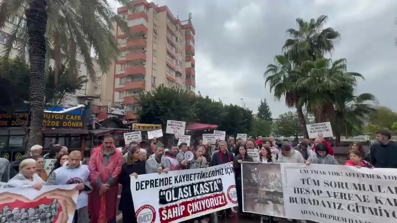 Kahramanmaraş merkezli 6 Şubat 2023 depremlerinde yakınlarını kaybeden ailelerin oluşturduğu Adalet Peşinde Aileleri Platformu üyeleri, Adana'da Aksa Gaz önünde bir araya gelerek, 'Depremde kaybettiklerimiz için 'olası kasta' sahip çıkıyoruz' yazılı pankart açtı.